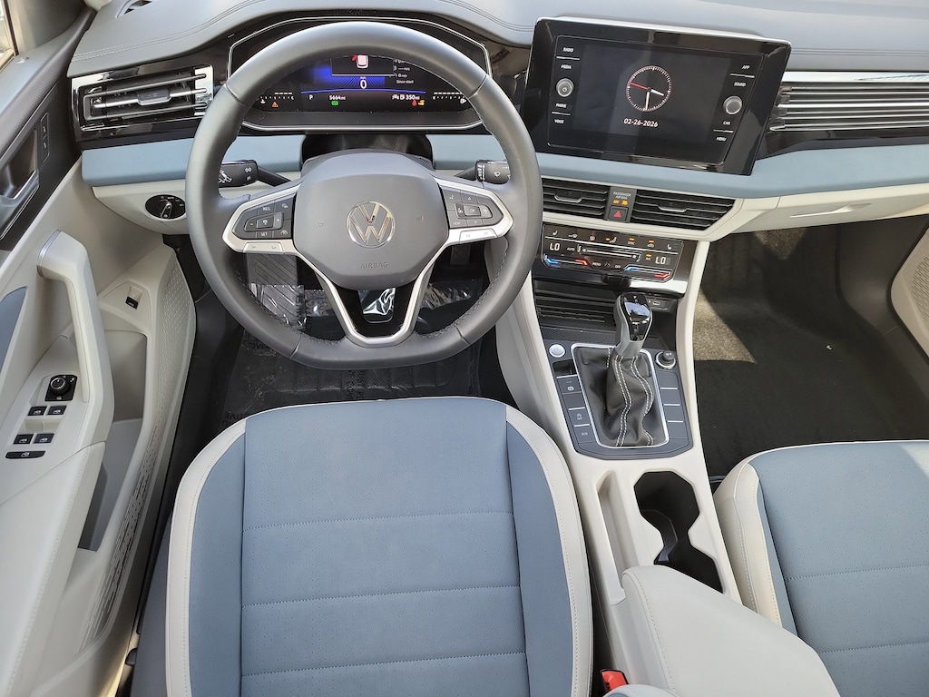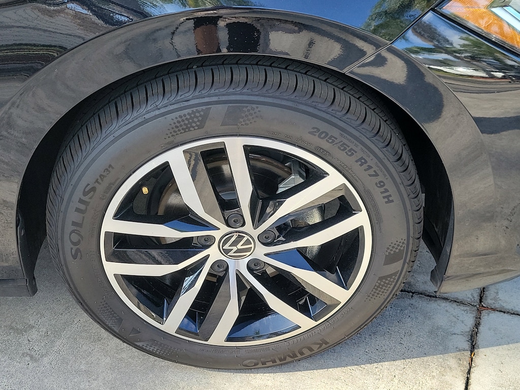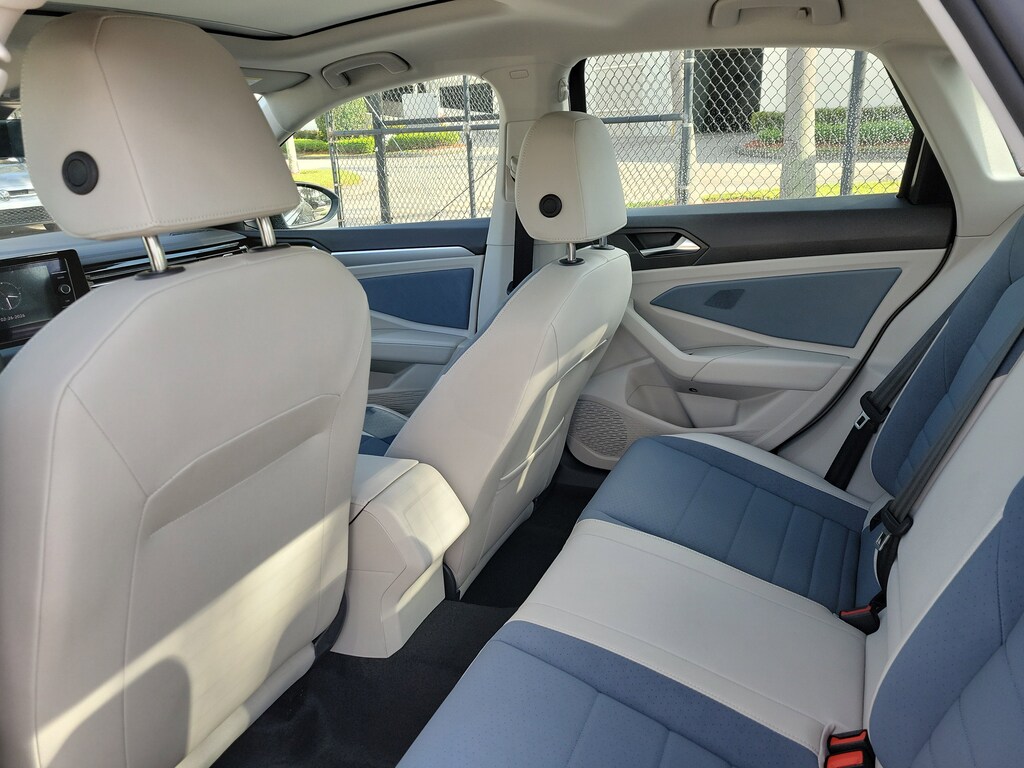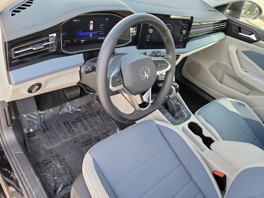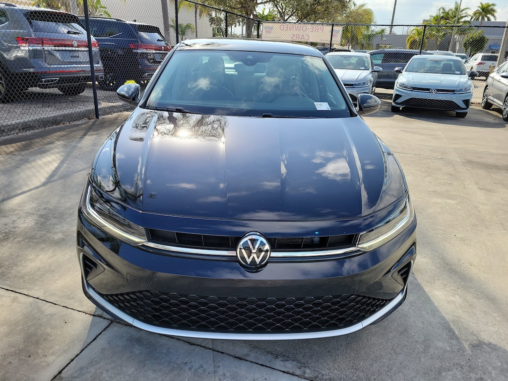 CARFAX One-Owner. Deep Black 2025 Volkswagen Jetta 1.5T SE 1.5L I-4 DI DOHC Turbocharged 8-Speed Automatic with Tiptronic FWD Sunroof Package (Power Tilting & Sliding Sunroof), 4-Wheel Disc Brakes, 6 Speakers, ABS brakes, Active Blind Spot Monitor, Air Conditioning, Alloy wheels, AM/FM radio: SiriusXM with 360L, Auto-dimming Rear-View mirror, Auto-Dimming Rearview Mirror w/HomeLink Connect, Automatic temperature control, Brake assist, Bumpers: body-color, CloudTex & V-Tex Leatherette Seat Trim, Delay-off headlights, Driver door bin, Driver vanity mirror, Dual front impact airbags, Dual front side impact airbags, Electronic Stability Control, Emergency communication system: VW Car-Net Safe & Secure 5-year, Exterior Parking Camera Rear, Front anti-roll bar, Front Bucket Seats, Front Center Armrest, Front dual zone A/C, Front wheel independent suspension, Fully automatic headlights, Heated door mirrors, Heated Front Seats, Heated front seats, Illuminated entry, Leather Shift Knob, Leather steering wheel, Low tire pressure warning, Occupant sensing airbag, Outside temperature display, Overhead airbag, Overhead console, Panic alarm, Passenger door bin, Passenger vanity mirror, Power door mirrors, Power driver seat, Power steering, Power windows, Radio data system, Radio: MIB3 Composition Media w/8" Touchscreen, Rain sensing wipers, Rear anti-roll bar, Rear reading lights, Rear seat center armrest, Rear window defroster, Remote keyless entry, Speed control, Speed-sensing steering, Split folding rear seat, Steering wheel mounted audio controls, Tachometer, Telescoping steering wheel, Tilt steering wheel, Traction control, Trip computer, Variably intermittent wipers, and Wheels: 17" Twin 5-Spoke 2-Tone Machined Alloy.