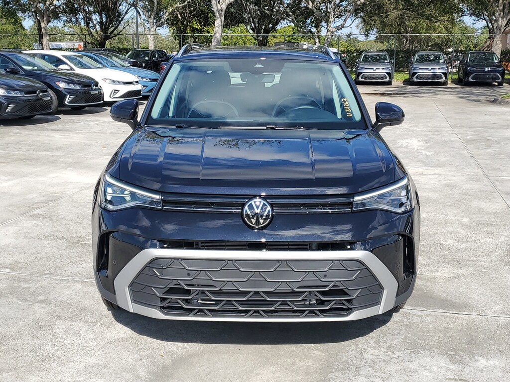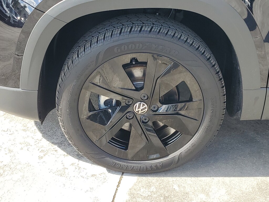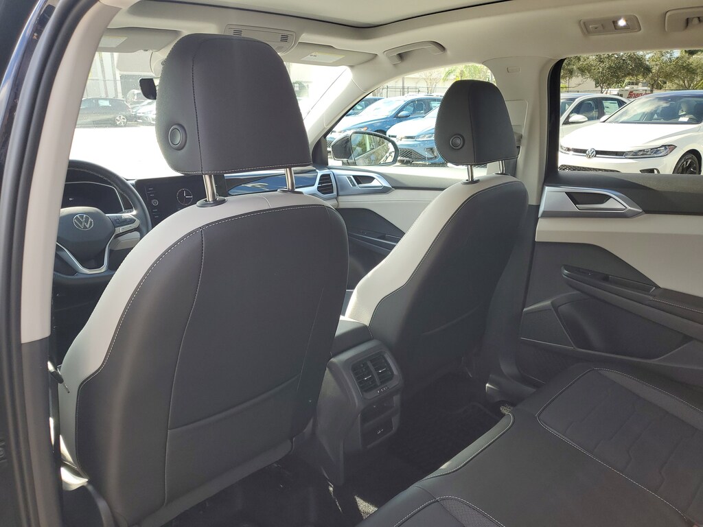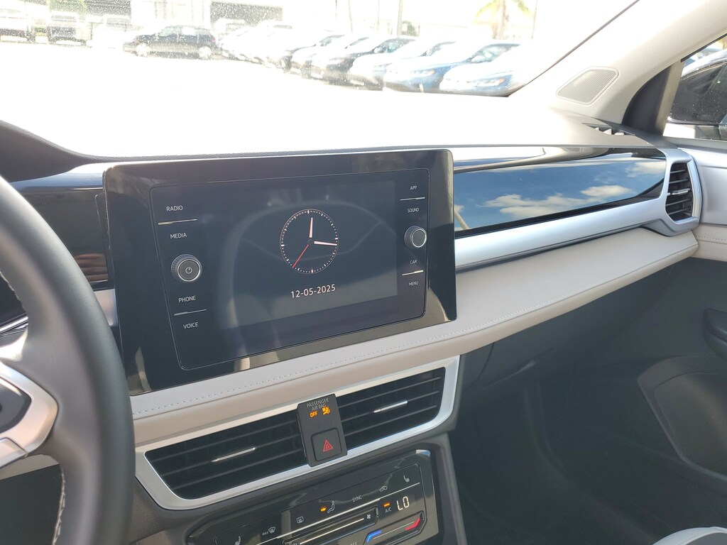CARFAX One-Owner. Deep Black 2025 Volkswagen Taos 1.5T SE 1.5L I4 Turbocharged DOHC 16V LEV3-SULEV30 174hp 8-Speed Automatic with Tiptronic FWD Black Wheel Package (Wheels: 18" Black Painted Alloy), Panoramic Sunroof Package, 4-Wheel Disc Brakes, 6 Speakers, ABS brakes, Active Blind Spot Monitor, Air Conditioning, Alloy wheels, AM/FM radio: SiriusXM with 360L, Auto High-beam Headlights, Auto-Dimming Rearview Mirror with HomeLink Connect, Automatic temperature control, Black Bumperdillo Protection Plate For Rear Bumper, Brake assist, Bumpers: body-color, Cloudtex and Cloth Seating Surfaces, Compass, Delay-off headlights, Driver door bin, Driver vanity mirror, Dual front impact airbags, Dual front side impact airbags, Electronic Stability Control, Emergency communication system: VW Car-Net Safe & Secure 5-year, Exterior Parking Camera Rear, Front anti-roll bar, Front Bucket Seats, Front Center Armrest, Front dual zone A/C, Front reading lights, Front Strut Rear Torsion Beam Suspension, Front wheel independent suspension, Fully automatic headlights, Heated door mirrors, Heated Front Bucket Seats, Heated front seats, Heated steering wheel, Illuminated entry, Leather Shift Knob, Low tire pressure warning, Occupant sensing airbag, Outside temperature display, Overhead airbag, Overhead console, Panic alarm, Passenger door bin, Passenger vanity mirror, Power door mirrors, Power driver seat, Power steering, Power windows, Radio data system, Radio: MIB3 Composition Media AM/FM/HD, Rain sensing wipers, Rear anti-roll bar, Rear seat center armrest, Rear window defroster, Rear window wiper, Remote keyless entry, Rubber Mats Kit, Security system, Speed control, Speed-sensing steering, Split folding rear seat, Spoiler, Steering wheel mounted audio controls, Tachometer, Telescoping steering wheel, Tilt steering wheel, Traction control, Trip computer, Variably intermittent wipers, and Wheels: 18" 2-Tone Machined Alloy.