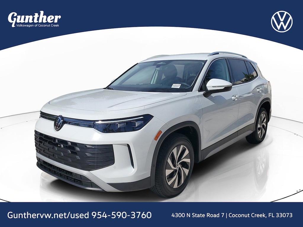 Pure White 2025 Volkswagen Tiguan 2.0T S 2.0L TSI DOHC 8-Speed Automatic FWD 4-Wheel Disc Brakes, 4-Wheel Independent Suspension, 7 Speakers, ABS brakes, Air Conditioning, Alloy wheels, AM/FM radio: SiriusXM with 360L, Auto High-beam Headlights, Automatic temperature control, Brake assist, Bumpers: body-color, Cloth Seating Surfaces, Compass, Delay-off headlights, Driver door bin, Driver vanity mirror, Dual front impact airbags, Dual front side impact airbags, Electronic Stability Control, Emergency communication system: VW Car-Net Safe & Secure 5-year, Exterior Parking Camera Rear, Four wheel independent suspension, Front anti-roll bar, Front Bucket Seats, Front Center Armrest, Front dual zone A/C, Front reading lights, Fully automatic headlights, Heated door mirrors, Heated Front Seats, Heated front seats, Heavy Duty Trunk Liner w/VW CarGo Blocks, Illuminated entry, Knee airbag, Leather Shift Knob, Low tire pressure warning, Occupant sensing airbag, Outside temperature display, Overhead airbag, Overhead console, Panic alarm, Passenger door bin, Passenger vanity mirror, Power door mirrors, Power steering, Power windows, Radio data system, Radio: MIB4 Composition Media Touchscreen AM/FM, Rain sensing wipers, Rear anti-roll bar, Rear reading lights, Rear seat center armrest, Rear side impact airbag, Rear window defroster, Rear window wiper, Remote keyless entry, Rubber Monster Mats Kit (Set of 4), Speed control, Speed-sensing steering, Split folding rear seat, Spoiler, Steering wheel mounted audio controls, Tachometer, Telescoping steering wheel, Tilt steering wheel, Traction control, Trip computer, Turn signal indicator mirrors, Variably intermittent wipers, and Wheels: 17" 2-Tone Machined Alloy.