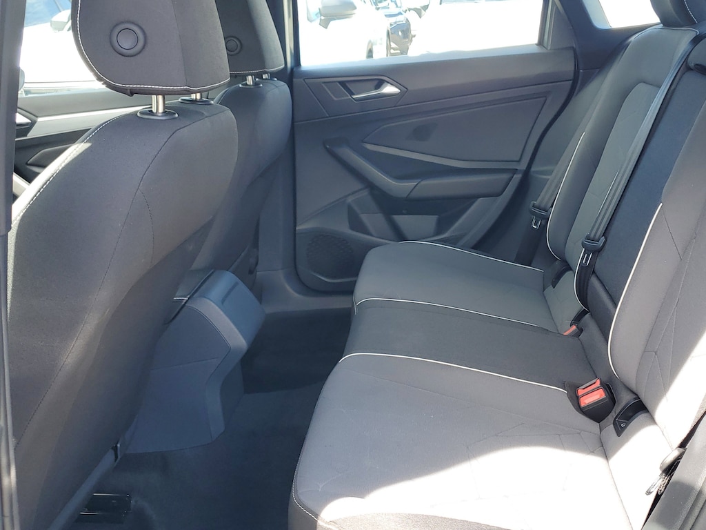 Platinum Gray Metallic 2026 Volkswagen Jetta 1.5T Sport 1.5L I-4 DI DOHC Turbocharged 8-Speed Automatic with Tiptronic FWD 4 Speakers, 4-Wheel Disc Brakes, ABS brakes, Active Blind Spot Monitor, Air Conditioning, Alloy wheels, Auto-dimming Rear-View mirror, Automatic temperature control, Brake assist, Bumpers: body-color, Cloth Seat Trim, Delay-off headlights, Driver door bin, Driver vanity mirror, Dual front impact airbags, Dual front side impact airbags, Electronic Stability Control, Emergency communication system: VW Car-Net Safe & Secure 5-year, Exterior Parking Camera Rear, Front anti-roll bar, Front Bucket Seats, Front Center Armrest, Front dual zone A/C, Front wheel independent suspension, Fully automatic headlights, Heated door mirrors, Heated Front Seats, Heated front seats, Heavy Duty Trunk Liner with VW CarGo Blocks, Illuminated entry, Leather Shift Knob, Leather steering wheel, Low tire pressure warning, Occupant sensing airbag, Outside temperature display, Overhead airbag, Overhead console, Panic alarm, Passenger door bin, Passenger vanity mirror, Power door mirrors, Power steering, Power windows, Radio data system, Radio: MIB3 Composition Color with 8" Touchscreen, Rain sensing wipers, Rear anti-roll bar, Rear reading lights, Rear seat center armrest, Rear window defroster, Remote keyless entry, Rubber Monster Mats Kit (set of 4), Speed control, Speed-sensing steering, Split folding rear seat, Steering wheel mounted audio controls, Tachometer, Telescoping steering wheel, Tilt steering wheel, Traction control, Trip computer, Variably intermittent wipers, and Wheels: 17" 2-Tone Machined Alloy.