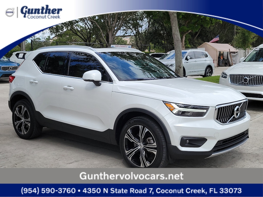 CARFAX One-Owner. Crystal White 2022 Volvo XC40 T4 Inscription I4 Automatic with Geartronic FWD 4-Wheel Disc Brakes, 8 Speakers, ABS brakes, Air Conditioning, Alloy wheels, AM/FM radio: SiriusXM, Anti-whiplash front head restraints, Apple CarPlay/Android Auto, Auto High-beam Headlights, Auto-dimming door mirrors, Auto-dimming Rear-View mirror, Automatic temperature control, Brake assist, Bumpers: body-color, Delay-off headlights, Driver door bin, Driver vanity mirror, Dual front impact airbags, Dual front side impact airbags, Electronic Stability Control, Emergency communication system: Volvo On-Call, Exterior Parking Camera Rear, Four wheel independent suspension, Front anti-roll bar, Front Bucket Seats, Front Center Armrest, Front dual zone A/C, Front fog lights, Front Heated Bucket Seats, Front reading lights, Fully automatic headlights, Garage door transmitter: HomeLink, Genuine wood door panel insert, Heated door mirrors, Heated front seats, Illuminated entry, Knee airbag, Leather Seating Surfaces, Leather steering wheel, Low tire pressure warning, Memory seat, Navigation system: Sensus Navigation Pro, Occupant sensing airbag, Outside temperature display, Overhead airbag, Overhead console, Panic alarm, Passenger door bin, Passenger vanity mirror, Power door mirrors, Power driver seat, Power moonroof, Power passenger seat, Power steering, Power windows, Premium audio system: Sensus Connect, Radio data system, Radio: AM/FM/HD, Rain sensing wipers, Rear anti-roll bar, Rear fog lights, Rear reading lights, Rear seat center armrest, Rear window defroster, Rear window wiper, Remote keyless entry, Roof rack: rails only, Security system, Sensus Navigation Pro, Speed control, Speed-sensing steering, Split folding rear seat, Spoiler, Steering wheel mounted audio controls, Tachometer, Telescoping steering wheel, Tilt steering wheel, Traction control, Trip computer, Turn signal indicator mirrors, Variably intermittent wipers, and Wheels: 18" 6-Double Spoke Black Diamond Cut Alloy.