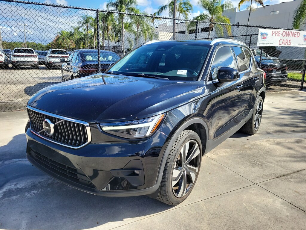 Recent Arrival! CARFAX One-Owner. Onyx Black Metallic 2023 Volvo XC40 B5 Plus Bright Theme 2.0L I4 Turbocharged DOHC 16V LEV3-ULEV70 Automatic with Geartronic AWD Internet access capable: Digital Services Package w/ 4 Year Subscription, 4-Wheel Disc Brakes, 8 Speakers, ABS brakes, Air Conditioning, Alloy wheels, AM/FM Radio, AM/FM radio: SiriusXM, Apple CarPlay, Auto High-beam Headlights, Auto-dimming door mirrors, Auto-dimming Rear-View mirror, Automatic temperature control, Brake assist, Bumpers: body-color, Delay-off headlights, Driver door bin, Driver vanity mirror, Dual front impact airbags, Dual front side impact airbags, Electronic Stability Control, Emergency communication system: Volvo Cars App w/4 Year Subscription, Exterior Parking Camera Rear, Four wheel independent suspension, Front anti-roll bar, Front Bucket Seats, Front Center Armrest, Front dual zone A/C, Front fog lights, Front reading lights, Fully automatic headlights, Garage door transmitter: HomeLink, Heated door mirrors, Heated front seats, Illuminated entry, Knee airbag, Leather Seating Surfaces, Low tire pressure warning, Memory seat, Navigation System, Occupant sensing airbag, Outside temperature display, Overhead airbag, Overhead console, Panic alarm, Passenger door bin, Passenger vanity mirror, Power door mirrors, Power driver seat, Power moonroof, Power passenger seat, Power steering, Power windows, Radio data system, Rain sensing wipers, Rear anti-roll bar, Rear fog lights, Rear reading lights, Rear seat center armrest, Rear window defroster, Rear window wiper, Remote keyless entry, Security system, Speed control, Speed-sensing steering, Split folding rear seat, Spoiler, Steering wheel mounted audio controls, Tachometer, Telescoping steering wheel, Tilt steering wheel, Traction control, Trip computer, Turn signal indicator mirrors, Variably intermittent wipers, and Wheels: 18" 5-Double Spoke Black Diamond Cut Alloy.
