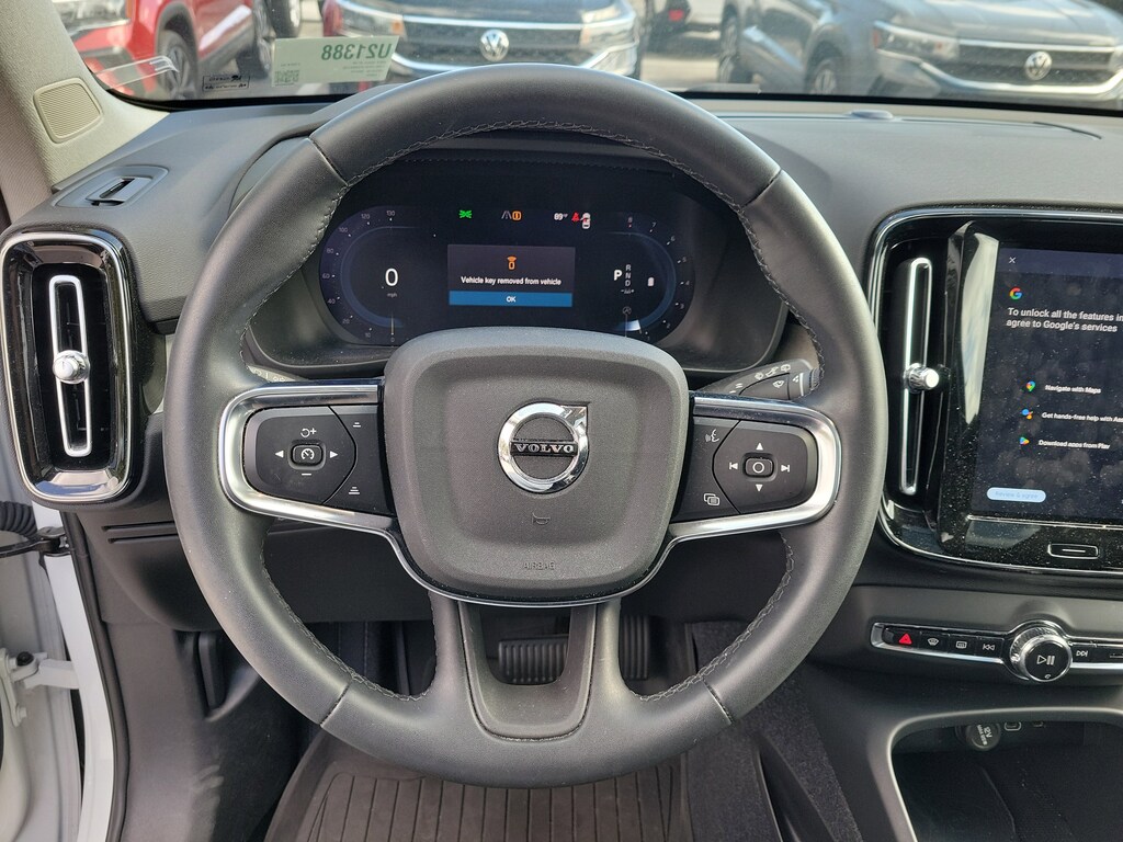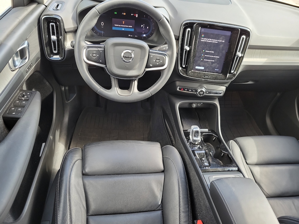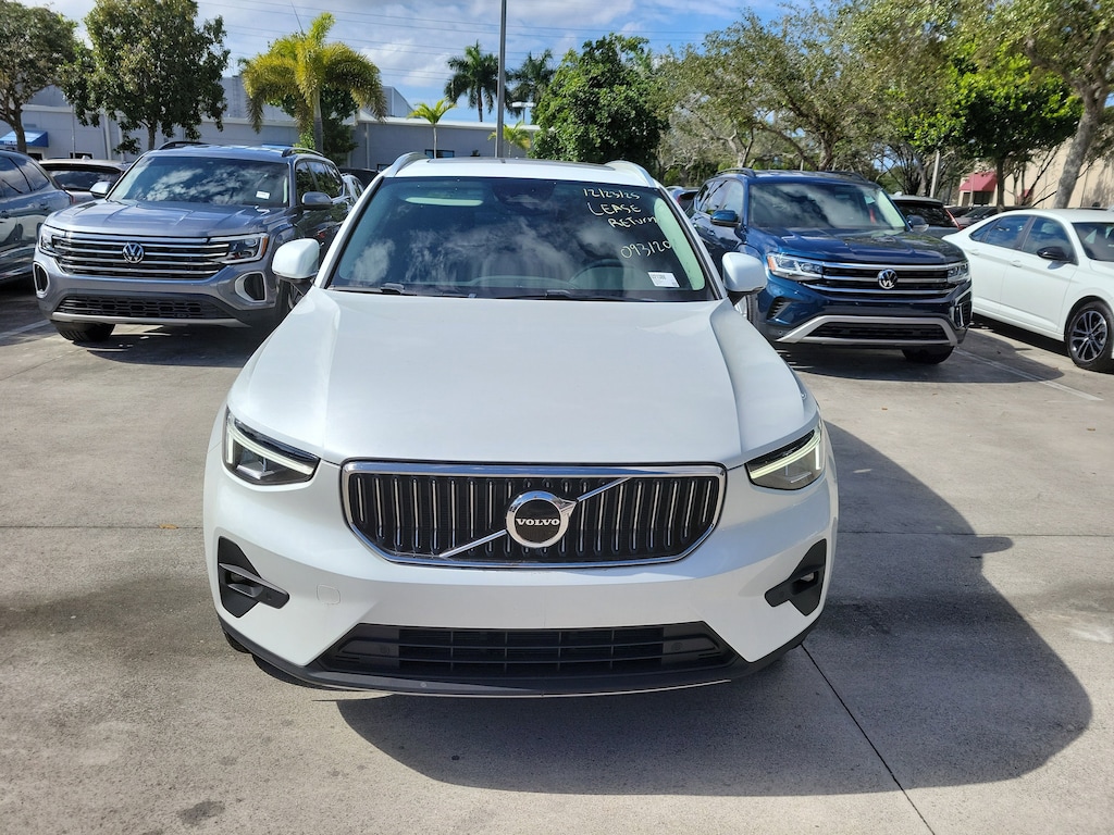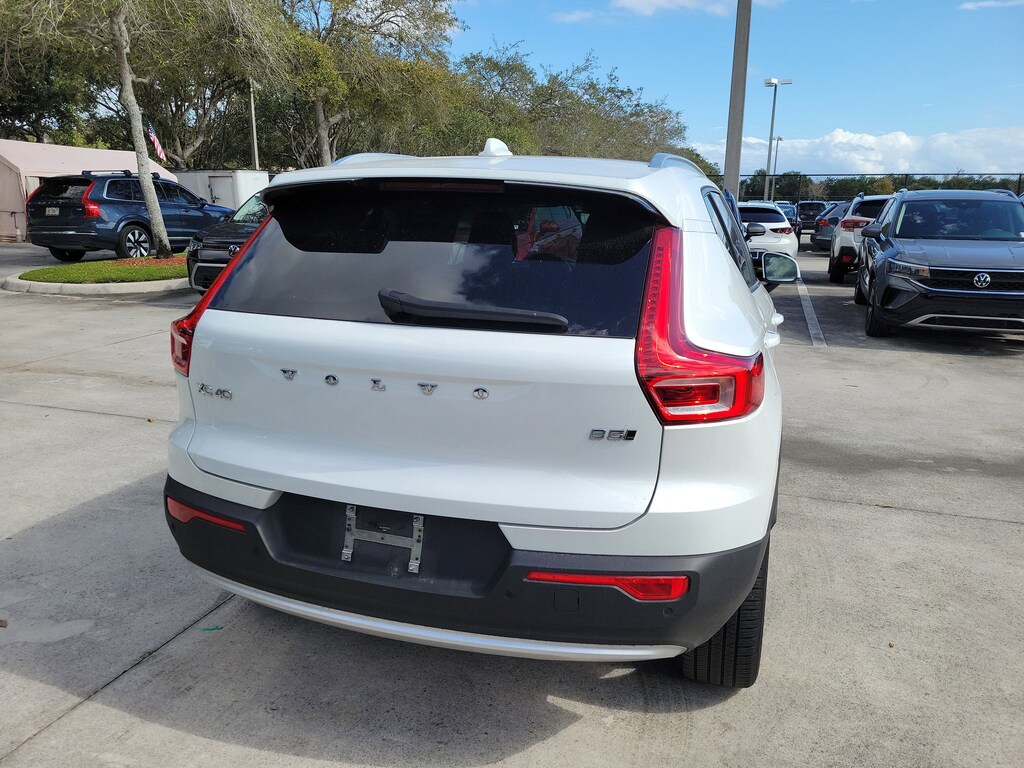 CARFAX One-Owner. Certified. Crystal White 2023 Volvo XC40 B5 Plus Bright Theme 2.0L I4 Turbocharged DOHC 16V LEV3-ULEV70 Automatic with Geartronic AWD Internet access capable: Digital Services Package w/ 4 Year Subscription, 4-Wheel Disc Brakes, 8 Speakers, ABS brakes, Air Conditioning, Alloy wheels, AM/FM Radio, AM/FM radio: SiriusXM, Apple CarPlay, Auto High-beam Headlights, Auto-dimming door mirrors, Auto-dimming Rear-View mirror, Automatic temperature control, Brake assist, Bumpers: body-color, Delay-off headlights, Driver door bin, Driver vanity mirror, Dual front impact airbags, Dual front side impact airbags, Electronic Stability Control, Emergency communication system: Volvo Cars App w/4 Year Subscription, Exterior Parking Camera Rear, Four wheel independent suspension, Front anti-roll bar, Front Bucket Seats, Front Center Armrest, Front dual zone A/C, Front fog lights, Front reading lights, Fully automatic headlights, Garage door transmitter: HomeLink, Heated door mirrors, Heated front seats, Illuminated entry, Knee airbag, Leather Seating Surfaces, Low tire pressure warning, Memory seat, Navigation System, Occupant sensing airbag, Outside temperature display, Overhead airbag, Overhead console, Panic alarm, Passenger door bin, Passenger vanity mirror, Power door mirrors, Power driver seat, Power moonroof, Power passenger seat, Power steering, Power windows, Radio data system, Rain sensing wipers, Rear anti-roll bar, Rear fog lights, Rear reading lights, Rear seat center armrest, Rear window defroster, Rear window wiper, Remote keyless entry, Security system, Speed control, Speed-sensing steering, Split folding rear seat, Spoiler, Steering wheel mounted audio controls, Tachometer, Telescoping steering wheel, Tilt steering wheel, Traction control, Trip computer, Turn signal indicator mirrors, Variably intermittent wipers, and Wheels: 18" 5-Double Spoke Black Diamond Cut Alloy.