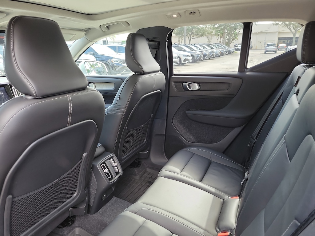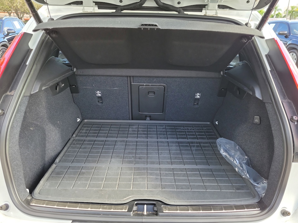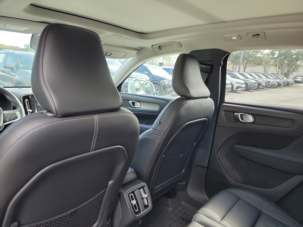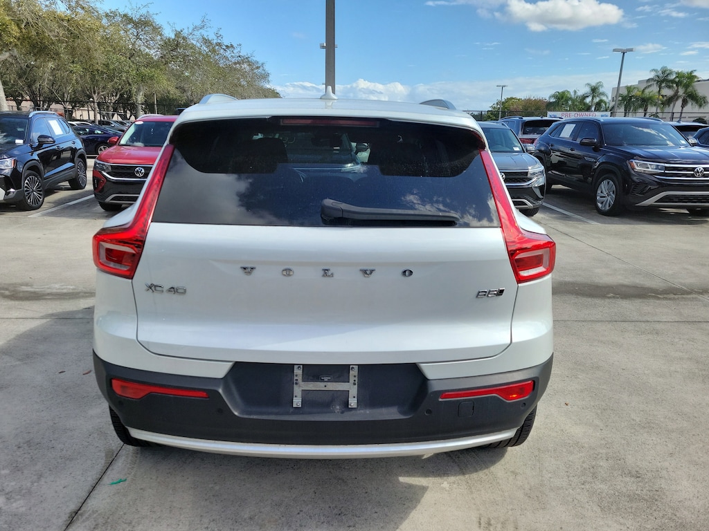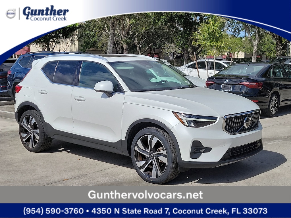 CARFAX One-Owner. Certified. Crystal White 2023 Volvo XC40 B5 Plus Bright Theme 2.0L I4 Turbocharged DOHC 16V LEV3-ULEV70 Automatic with Geartronic AWD Internet access capable: Digital Services Package w/ 4 Year Subscription, 4-Wheel Disc Brakes, 8 Speakers, ABS brakes, Air Conditioning, Alloy wheels, AM/FM Radio, AM/FM radio: SiriusXM, Apple CarPlay, Auto High-beam Headlights, Auto-dimming door mirrors, Auto-dimming Rear-View mirror, Automatic temperature control, Brake assist, Bumpers: body-color, Delay-off headlights, Driver door bin, Driver vanity mirror, Dual front impact airbags, Dual front side impact airbags, Electronic Stability Control, Emergency communication system: Volvo Cars App w/4 Year Subscription, Exterior Parking Camera Rear, Four wheel independent suspension, Front anti-roll bar, Front Bucket Seats, Front Center Armrest, Front dual zone A/C, Front fog lights, Front reading lights, Fully automatic headlights, Garage door transmitter: HomeLink, Heated door mirrors, Heated front seats, Illuminated entry, Knee airbag, Leather Seating Surfaces, Low tire pressure warning, Memory seat, Navigation System, Occupant sensing airbag, Outside temperature display, Overhead airbag, Overhead console, Panic alarm, Passenger door bin, Passenger vanity mirror, Power door mirrors, Power driver seat, Power moonroof, Power passenger seat, Power steering, Power windows, Radio data system, Rain sensing wipers, Rear anti-roll bar, Rear fog lights, Rear reading lights, Rear seat center armrest, Rear window defroster, Rear window wiper, Remote keyless entry, Security system, Speed control, Speed-sensing steering, Split folding rear seat, Spoiler, Steering wheel mounted audio controls, Tachometer, Telescoping steering wheel, Tilt steering wheel, Traction control, Trip computer, Turn signal indicator mirrors, Variably intermittent wipers, and Wheels: 18" 5-Double Spoke Black Diamond Cut Alloy.