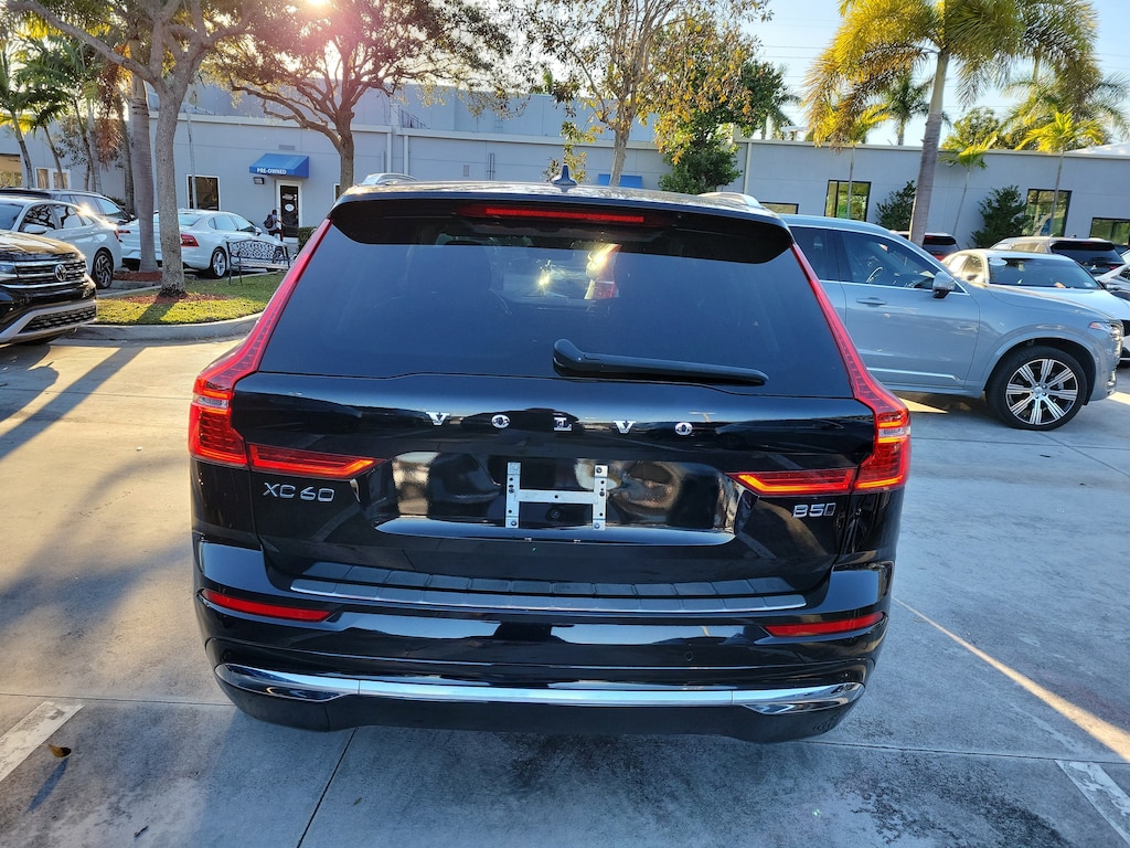 CARFAX One-Owner. Onyx Black Metallic 2023 Volvo XC60 B5 Plus Bright Theme 2.0L I4 Turbocharged Automatic with Geartronic AWD Protection Package Premier (Bumper Cover, Cargo Tray, First Aid Kit, Rubber Floor Mats, and Wheel Locks), 10 Speakers, 4-Wheel Disc Brakes, ABS brakes, Air Conditioning, Air Purifier, Alloy wheels, AM/FM radio: SiriusXM, Anti-whiplash front head restraints, Apple CarPlay, Auto High-beam Headlights, Auto-dimming door mirrors, Auto-dimming Rear-View mirror, Automatic temperature control, Brake assist, Bumpers: body-color, Delay-off headlights, Driver door bin, Driver vanity mirror, Dual front impact airbags, Dual front side impact airbags, Electronic Stability Control, Emergency communication system: Volvo Cars App w/4 Year Subscription, Exterior Parking Camera Rear, Four wheel independent suspension, Front anti-roll bar, Front Bucket Seats, Front Center Armrest, Front dual zone A/C, Front fog lights, Front reading lights, Fully automatic headlights, Garage door transmitter: HomeLink, Genuine wood console insert, Genuine wood dashboard insert, Heated door mirrors, Heated Front Bucket Seats, Heated front seats, Illuminated entry, Knee airbag, Leather Shift Knob, Leather Upholstery, Low tire pressure warning, Luggage Cover, Memory seat, Occupant sensing airbag, Outside temperature display, Overhead airbag, Panic alarm, Passenger door bin, Passenger vanity mirror, Power door mirrors, Power driver seat, Power moonroof, Power Operated Tailgate, Power passenger seat, Power steering, Power windows, Radio data system, Radio: High Performance Audio System, Rain sensing wipers, Rear anti-roll bar, Rear fog lights, Rear reading lights, Rear seat center armrest, Rear window defroster, Rear window wiper, Remote keyless entry, Security system, Speed control, Split folding rear seat, Spoiler, Steering wheel mounted audio controls, Tachometer, Telescoping steering wheel, Tilt steering wheel, Traction control, Trip computer, Turn signal indicator mirrors, Variably intermittent wipers, Wheels: 19" 5-V Spoke Black Diamond Cut Alloy, and Wheels: 20" 5-Multi Spoke Black Diamond Cut Alloy.
