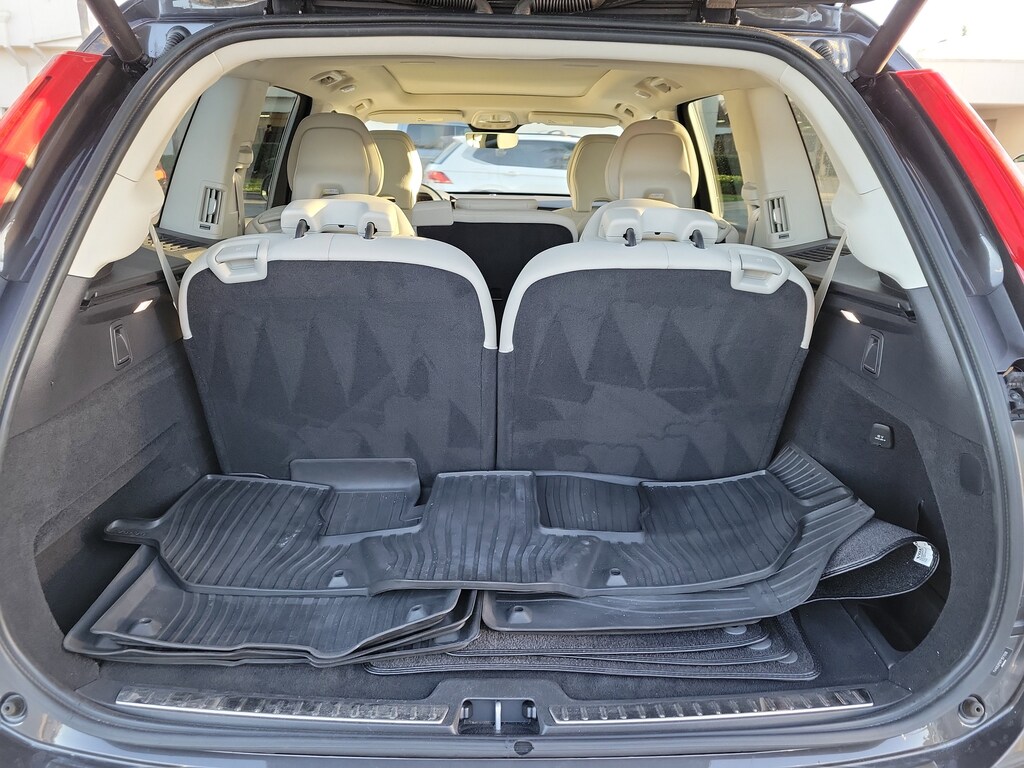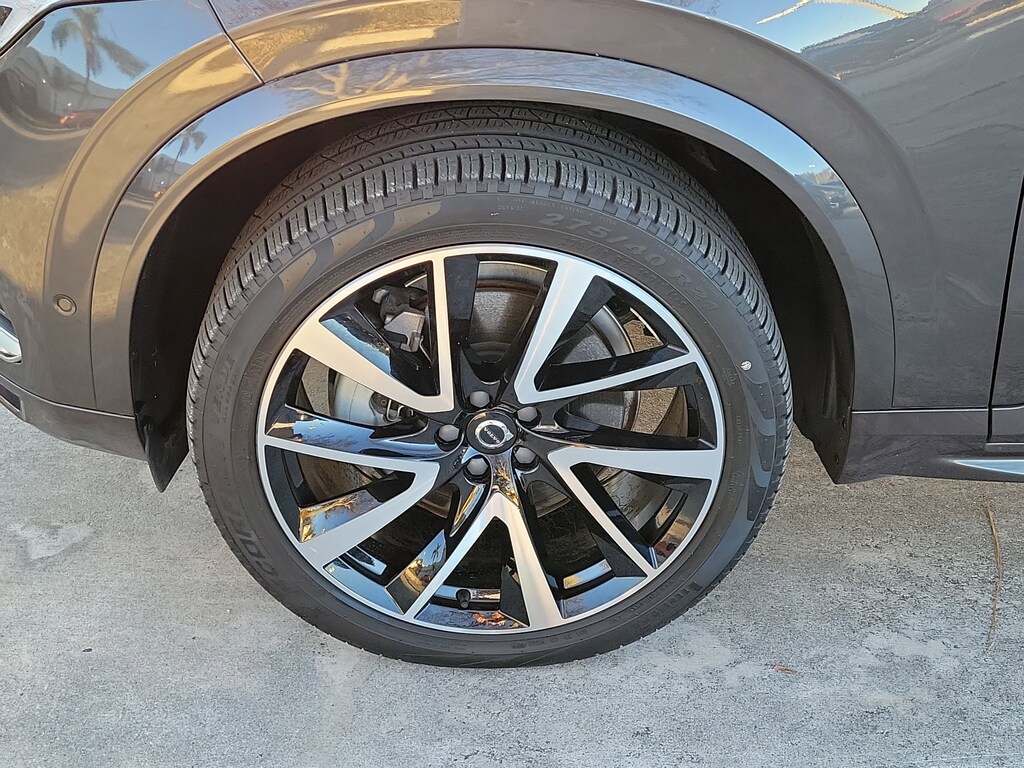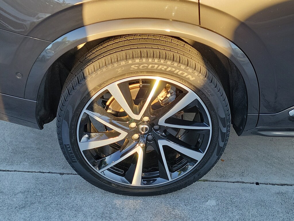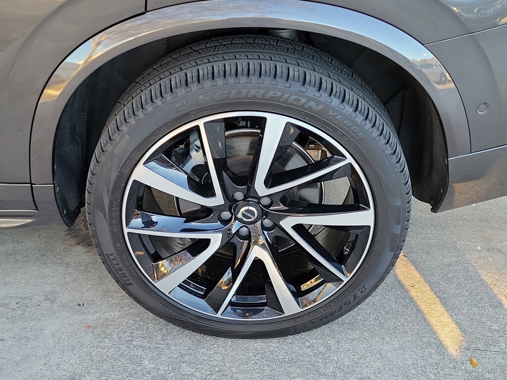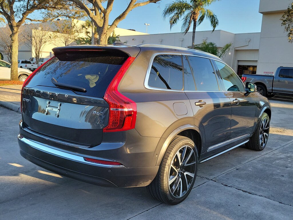 CARFAX One-Owner. Platinum Gray Metallic 2023 Volvo XC90 B6 Plus 7-Seater 2.0L I4 Turbocharged DOHC 16V LEV3-ULEV70 Automatic with Geartronic AWD Protection Package Premier (Bumper Cover, Cargo Tray, First Aid Kit, Rubber Floor Mats, and Wheel Locks), 10 Speakers, 3rd row seats: bucket, 4-Wheel Disc Brakes, ABS brakes, Air Conditioning, Alloy wheels, AM/FM radio: SiriusXM, Anti-whiplash front head restraints, Apple CarPlay, Auto High-beam Headlights, Auto-dimming door mirrors, Auto-dimming Rear-View mirror, Automatic temperature control, Brake assist, Bumpers: body-color, Delay-off headlights, Driver door bin, Driver vanity mirror, Dual front impact airbags, Dual front side impact airbags, Electronic Stability Control, Emergency communication system: Volvo Cars App w/4 Year Subscription, Exterior Parking Camera Rear, Four wheel independent suspension, Front anti-roll bar, Front Bucket Seats, Front Center Armrest w/Storage, Front dual zone A/C, Front fog lights, Front reading lights, Fully automatic headlights, Garage door transmitter: HomeLink, Genuine wood dashboard insert, Genuine wood door panel insert, Headlight cleaning, Heated door mirrors, Heated Front Bucket Seats, Heated front seats, Heated rear seats, Heated steering wheel, Illuminated entry, Integrated rear child seats, Knee airbag, Leather Shift Knob, Leather Upholstery, Low tire pressure warning, Luggage Cover, Memory seat, Navigation System, Occupant sensing airbag, Outside temperature display, Overhead airbag, Panic alarm, Passenger door bin, Passenger vanity mirror, Power door mirrors, Power driver seat, Power moonroof, Power passenger seat, Power steering, Power windows, Radio data system, Radio: High Performance Audio System, Rain sensing wipers, Rear air conditioning, Rear anti-roll bar, Rear dual zone A/C, Rear fog lights, Rear reading lights, Rear seat center armrest, Rear window defroster, Rear window wiper, Remote keyless entry, Security system, Speed control, Speed-sensing steering, Split folding rear seat, Spoiler, Steering wheel mounted audio controls, Tachometer, Telescoping steering wheel, Traction control, Trip computer, Turn signal indicator mirrors, Variably intermittent wipers, Wheels: 20" 5-Spoke Black Diamond Cut Alloy, and Wheels: 21" 5 V-Spoke Black Diamond Cut Alloy.