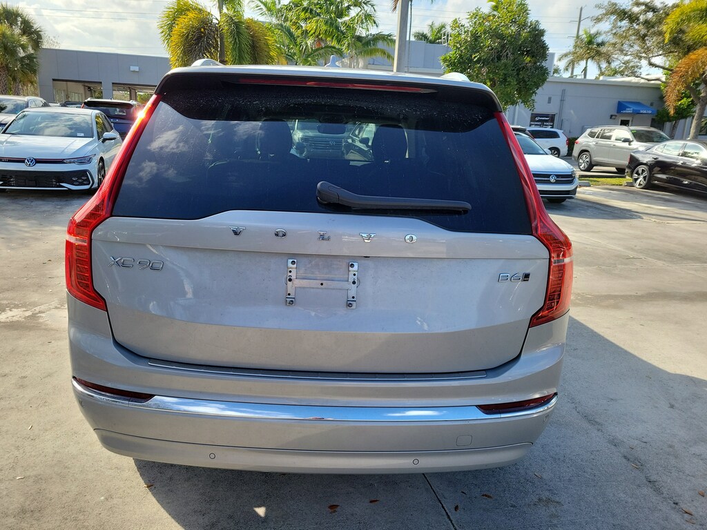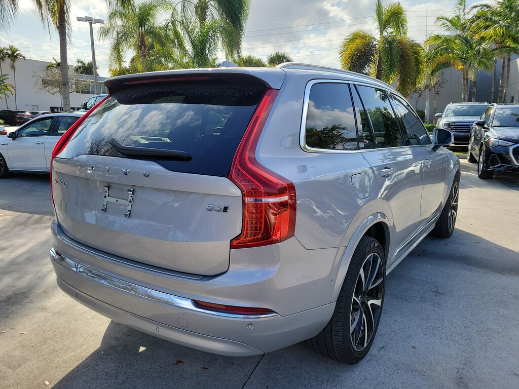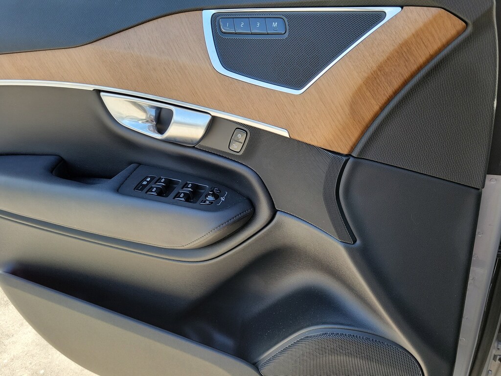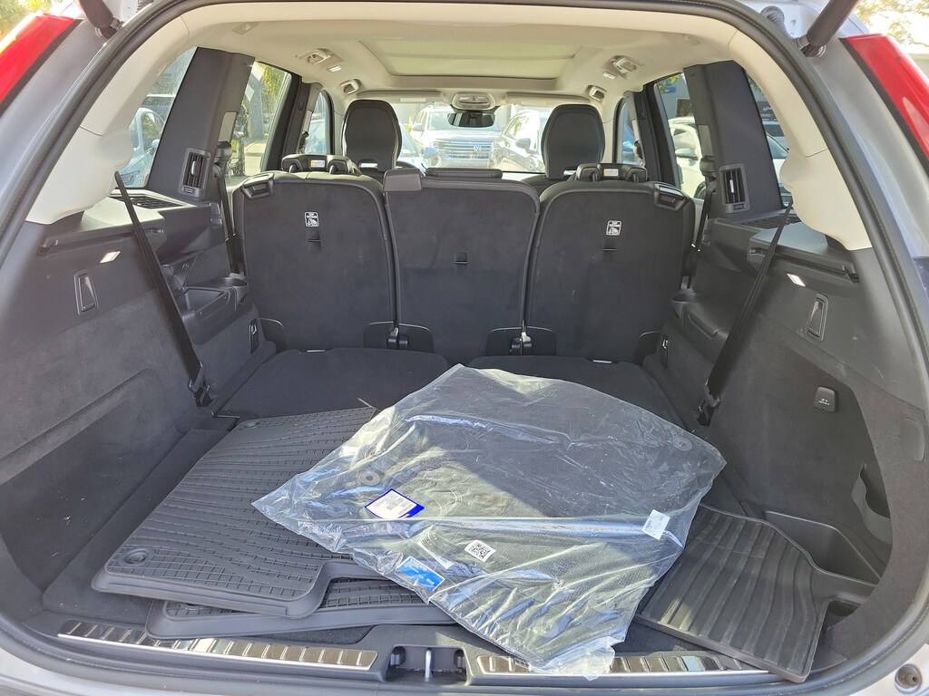 CARFAX One-Owner. Silver 2023 Volvo XC90 B6 Plus 7-Seater 2.0L I4 Turbocharged DOHC 16V LEV3-ULEV70 Automatic with Geartronic AWD Protection Package Premier (Bumper Cover, Cargo Tray, First Aid Kit, Rubber Floor Mats, and Wheel Locks), 10 Speakers, 3rd row seats: bucket, 4-Wheel Disc Brakes, ABS brakes, Air Conditioning, Alloy wheels, AM/FM radio: SiriusXM, Anti-whiplash front head restraints, Apple CarPlay, Auto High-beam Headlights, Auto-dimming door mirrors, Auto-dimming Rear-View mirror, Automatic temperature control, Brake assist, Bumpers: body-color, Delay-off headlights, Driver door bin, Driver vanity mirror, Dual front impact airbags, Dual front side impact airbags, Electronic Stability Control, Emergency communication system: Volvo Cars App w/4 Year Subscription, Exterior Parking Camera Rear, Four wheel independent suspension, Front anti-roll bar, Front Bucket Seats, Front Center Armrest w/Storage, Front dual zone A/C, Front fog lights, Front reading lights, Fully automatic headlights, Garage door transmitter: HomeLink, Genuine wood dashboard insert, Genuine wood door panel insert, Headlight cleaning, Heated door mirrors, Heated Front Bucket Seats, Heated front seats, Heated rear seats, Heated steering wheel, Illuminated entry, Integrated rear child seats, Knee airbag, Leather Shift Knob, Leather Upholstery, Low tire pressure warning, Luggage Cover, Memory seat, Navigation System, Occupant sensing airbag, Outside temperature display, Overhead airbag, Panic alarm, Passenger door bin, Passenger vanity mirror, Power door mirrors, Power driver seat, Power moonroof, Power passenger seat, Power steering, Power windows, Radio data system, Radio: High Performance Audio System, Rain sensing wipers, Rear air conditioning, Rear anti-roll bar, Rear dual zone A/C, Rear fog lights, Rear reading lights, Rear seat center armrest, Rear window defroster, Rear window wiper, Remote keyless entry, Security system, Speed control, Speed-sensing steering, Split folding rear seat, Spoiler, Steering wheel mounted audio controls, Tachometer, Telescoping steering wheel, Traction control, Trip computer, Turn signal indicator mirrors, Variably intermittent wipers, Wheels: 20" 5-Spoke Black Diamond Cut Alloy, and Wheels: 21" 5 V-Spoke Black Diamond Cut Alloy.