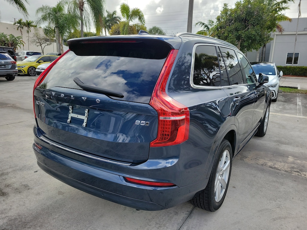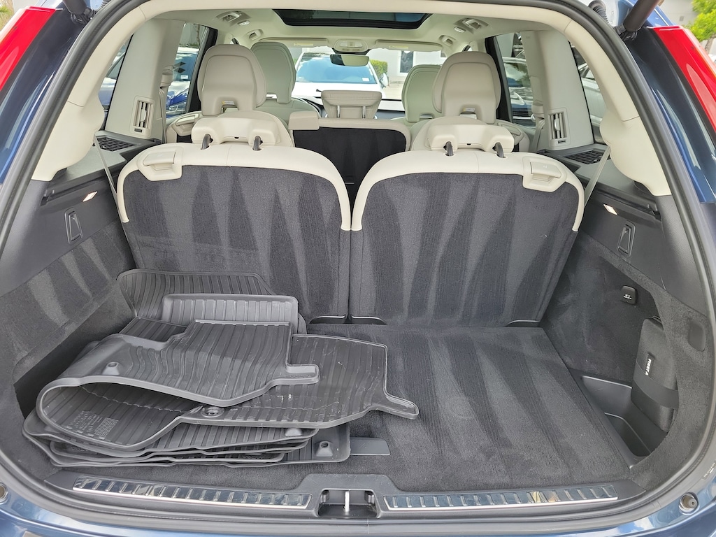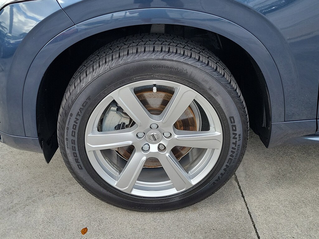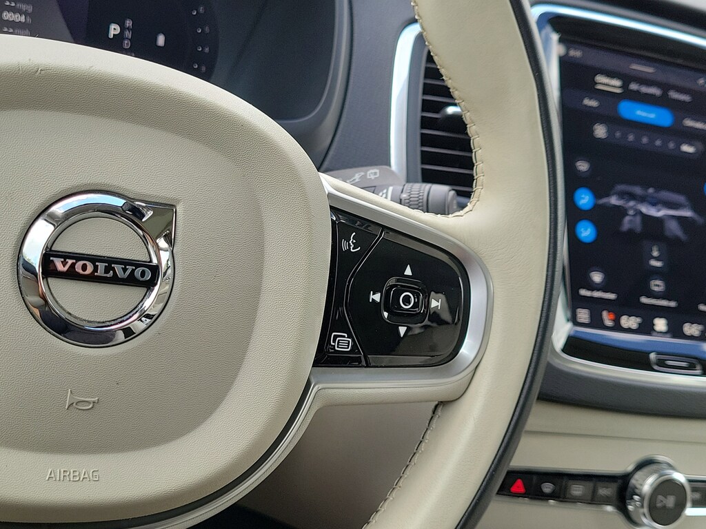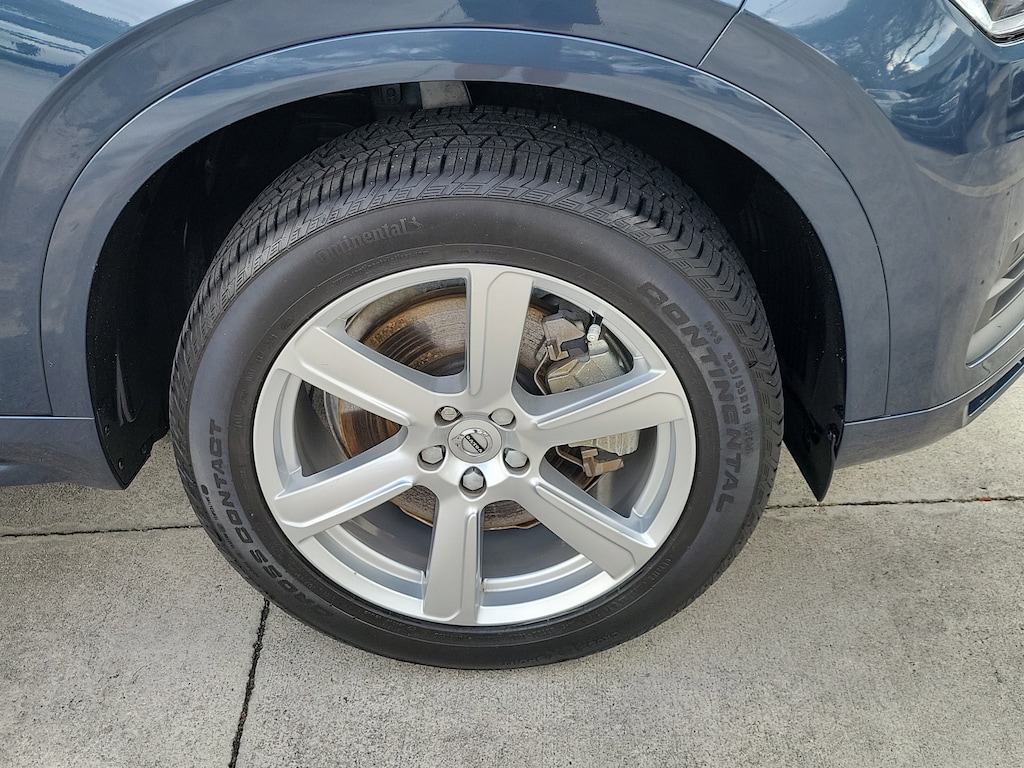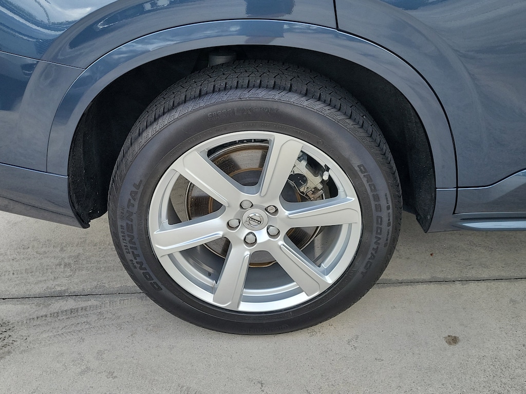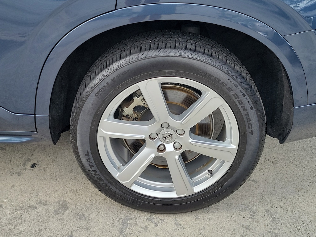 CARFAX One-Owner. Denim Blue Metallic 2023 Volvo XC90 B5 Core 2.0L I4 Turbocharged DOHC 16V LEV3-ULEV70 Automatic with Geartronic AWD Climate Package (Heated Rear Seats and Heated Steering Wheel), Protection Package Premier (Bumper Cover, Cargo Tray, First Aid Kit, Rubber Floor Mats, and Wheel Locks), 10 Speakers, 3rd row seats: bucket, 4-Wheel Disc Brakes, ABS brakes, Air Conditioning, Alloy wheels, AM/FM radio: SiriusXM, Anti-whiplash front head restraints, Apple CarPlay, Auto High-beam Headlights, Auto-dimming door mirrors, Auto-dimming Rear-View mirror, Automatic temperature control, Brake assist, Bumpers: body-color, Delay-off headlights, Driver door bin, Driver vanity mirror, Dual front impact airbags, Dual front side impact airbags, Electronic Stability Control, Emergency communication system: Volvo Cars App w/4 Year Subscription, Exterior Parking Camera Rear, Four wheel independent suspension, Front anti-roll bar, Front Bucket Seats, Front Center Armrest w/Storage, Front dual zone A/C, Front fog lights, Front reading lights, Fully automatic headlights, Garage door transmitter: HomeLink, Heated door mirrors, Heated Front Bucket Seats, Heated front seats, Illuminated entry, Knee airbag, Leather Shift Knob, Leatherette Upholstery, Low tire pressure warning, Memory seat, Navigation System, Occupant sensing airbag, Outside temperature display, Overhead airbag, Panic alarm, Passenger door bin, Passenger vanity mirror, Power door mirrors, Power driver seat, Power moonroof, Power passenger seat, Power steering, Power windows, Radio data system, Radio: High Performance Audio System, Rain sensing wipers, Rear air conditioning, Rear anti-roll bar, Rear dual zone A/C, Rear fog lights, Rear reading lights, Rear seat center armrest, Rear window defroster, Rear window wiper, Remote keyless entry, Security system, Speed control, Speed-sensing steering, Split folding rear seat, Spoiler, Steering wheel mounted audio controls, Tachometer, Telescoping steering wheel, Traction control, Trip computer, Turn signal indicator mirrors, Variably intermittent wipers, and Wheels: 19" 6-Spoke Turbine Sparkling Silver Alloy.