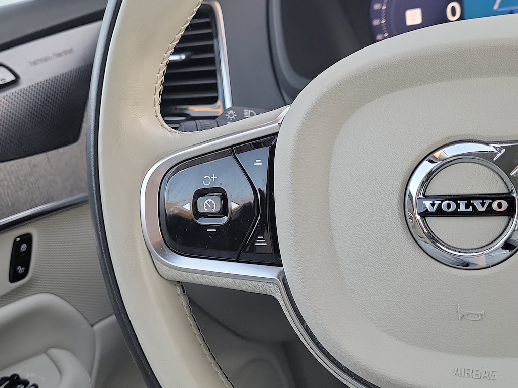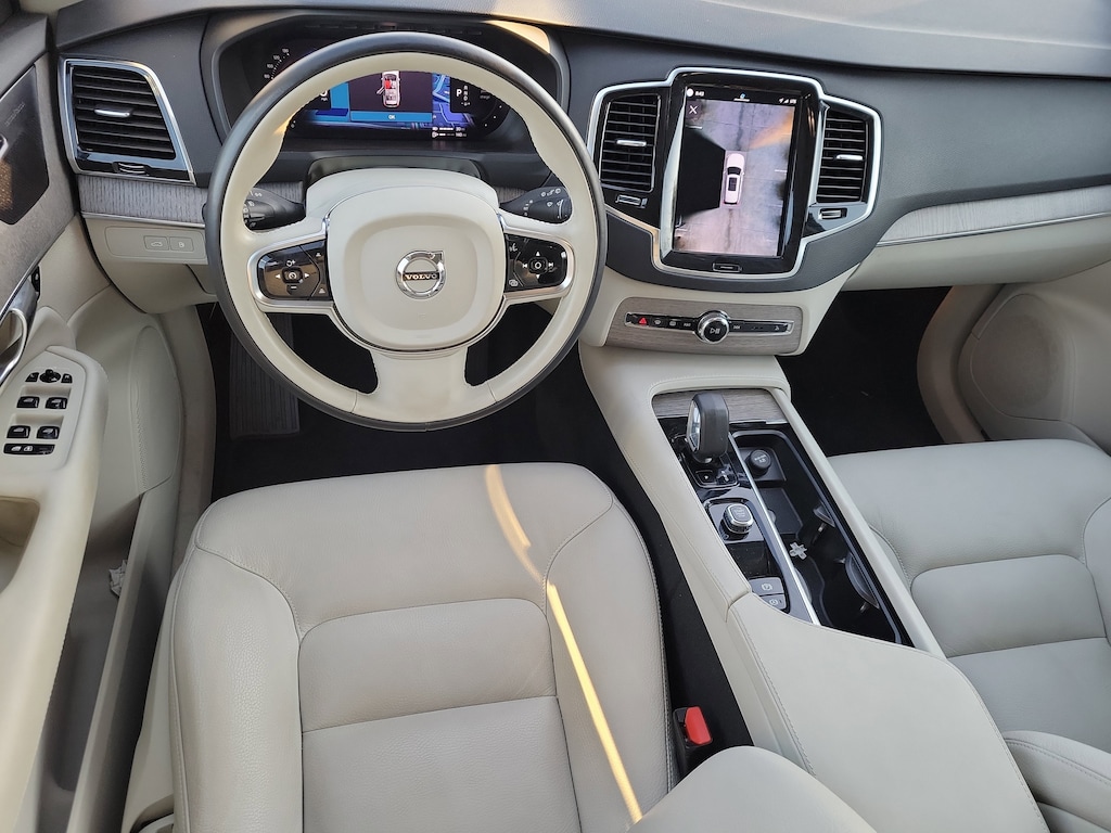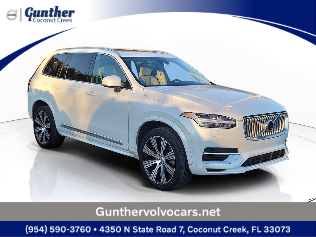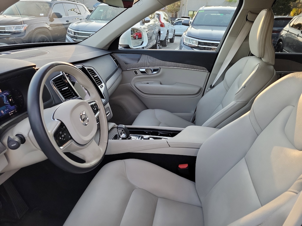 CARFAX One-Owner. Crystal White 2023 Volvo XC90 Recharge Plug-In Hybrid T8 Plus 6 Passenger 2.0L I4 Hybrid Turbocharged DOHC 16V LEV3-SULEV30 Automatic with Geartronic AWD 10 Speakers, 3rd row seats: bucket, 4-Wheel Disc Brakes, ABS brakes, Air Conditioning, Alloy wheels, AM/FM radio: SiriusXM, Anti-whiplash front head restraints, Apple CarPlay, Auto High-beam Headlights, Auto-dimming door mirrors, Auto-dimming Rear-View mirror, Automatic temperature control, Brake assist, Bumpers: body-color, Delay-off headlights, Driver door bin, Driver vanity mirror, Dual front impact airbags, Dual front side impact airbags, Electronic Stability Control, Emergency communication system: Volvo Cars App w/4 Year Subscription, Exterior Parking Camera Rear, Four wheel independent suspension, Front anti-roll bar, Front Bucket Seats, Front Center Armrest w/Storage, Front dual zone A/C, Front reading lights, Fully automatic headlights, Garage door transmitter: HomeLink, Genuine wood dashboard insert, Genuine wood door panel insert, Headlight cleaning, Heated door mirrors, Heated Front Bucket Seats, Heated front seats, Heated rear seats, Heated steering wheel, Illuminated entry, Integrated rear child seats, Knee airbag, Leather Upholstery, Low tire pressure warning, Memory seat, Navigation System, Occupant sensing airbag, Outside temperature display, Overhead airbag, Panic alarm, Passenger door bin, Passenger vanity mirror, Power door mirrors, Power driver seat, Power moonroof, Power passenger seat, Power steering, Power windows, Radio data system, Radio: High Performance Audio System, Rain sensing wipers, Rear air conditioning, Rear anti-roll bar, Rear dual zone A/C, Rear fog lights, Rear reading lights, Rear window defroster, Rear window wiper, Remote keyless entry, Security system, Speed control, Speed-sensing steering, Split folding rear seat, Spoiler, Steering wheel mounted audio controls, Tachometer, Telescoping steering wheel, Traction control, Trip computer, Turn signal indicator mirrors, Variably intermittent wipers, and Wheels: 20" 5-Multi Spoke Black Diamond Cut Alloy.