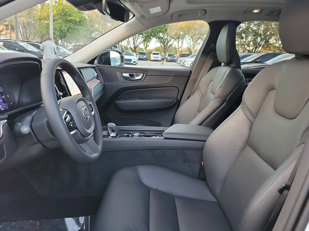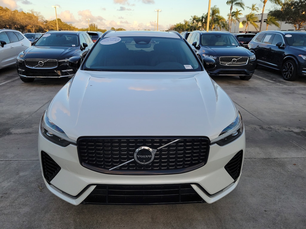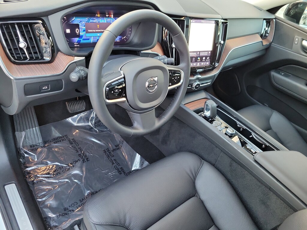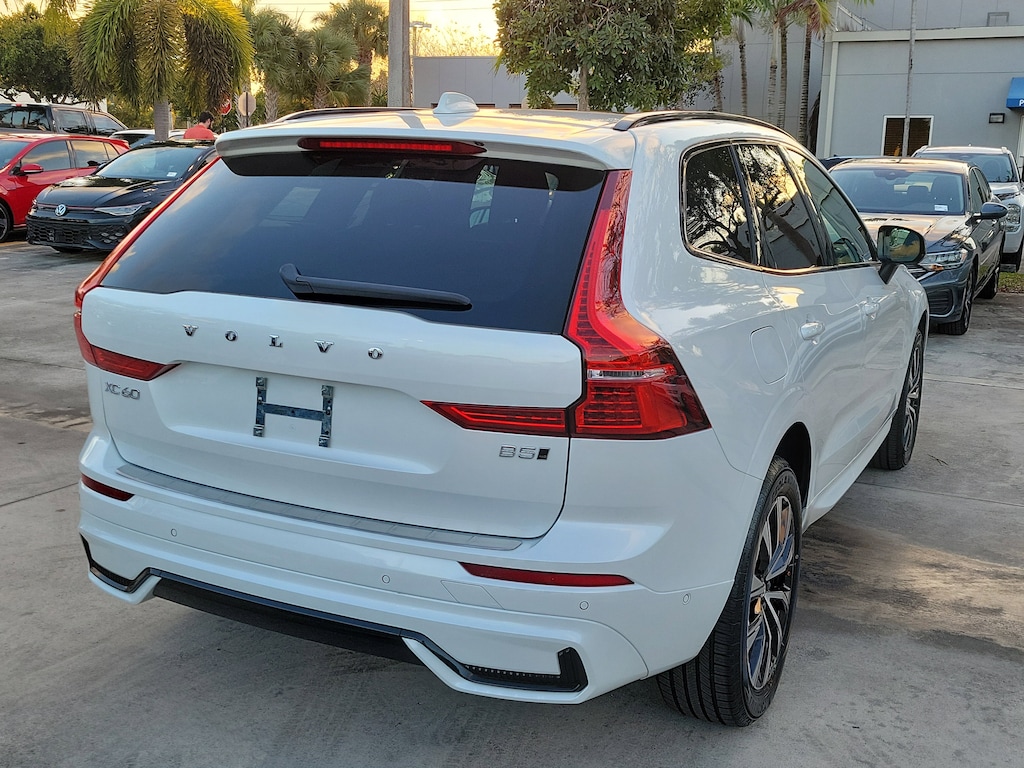 CARFAX One-Owner. Crystal White 2024 Volvo XC60 B5 Plus Dark Theme 2.0L I4 Turbocharged DOHC 16V LEV3-ULEV70 Automatic with Geartronic AWD Protection Package Premier (All-Weather Floor Mats, Bumper Cover, Cargo Tray, First Aid Kit, and Wheel Locks), 10 Speakers, 4-Wheel Disc Brakes, ABS brakes, Air Conditioning, Alloy wheels, AM/FM radio: SiriusXM, Anti-whiplash front head restraints, Apple CarPlay, Auto High-beam Headlights, Auto-dimming door mirrors, Auto-dimming Rear-View mirror, Automatic temperature control, Brake assist, Bumpers: body-color, Delay-off headlights, Driver door bin, Driver vanity mirror, Dual front impact airbags, Dual front side impact airbags, Electronic Stability Control, Emergency communication system: Volvo Cars App w/4 Year Subscription, Exterior Parking Camera Rear, Four wheel independent suspension, Front anti-roll bar, Front Bucket Seats, Front Center Armrest, Front dual zone A/C, Front fog lights, Front reading lights, Fully automatic headlights, Garage door transmitter: HomeLink, Genuine wood console insert, Genuine wood dashboard insert, Heated door mirrors, Heated Front Bucket Seats, Heated front seats, Illuminated entry, Knee airbag, Leather Shift Knob, Leather Upholstery, Low tire pressure warning, Luggage Cover, Memory seat, Occupant sensing airbag, Outside temperature display, Overhead airbag, Panic alarm, Passenger door bin, Passenger vanity mirror, Power door mirrors, Power driver seat, Power moonroof, Power Operated Tailgate, Power passenger seat, Power steering, Power windows, Radio data system, Radio: High Performance Audio System, Rain sensing wipers, Rear anti-roll bar, Rear fog lights, Rear reading lights, Rear seat center armrest, Rear window defroster, Rear window wiper, Remote keyless entry, Security system, Speed control, Split folding rear seat, Spoiler, Steering wheel mounted audio controls, Tachometer, Telescoping steering wheel, Tilt steering wheel, Traction control, Trip computer, Turn signal indicator mirrors, Variably intermittent wipers, and Wheels: 19" 5-V Spoke Black Diamond Cut Alloy.