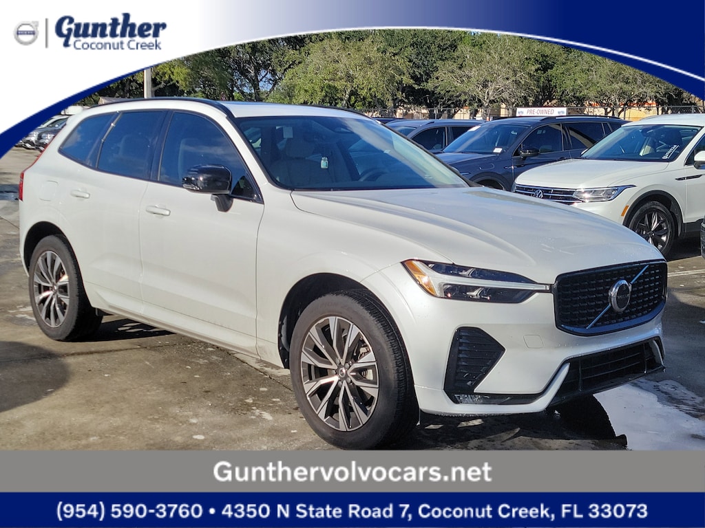 Recent Arrival! CARFAX One-Owner. Crystal White 2024 Volvo XC60 B5 Core 2.0L I4 Turbocharged DOHC 16V LEV3-ULEV70 Automatic with Geartronic AWD 10 Speakers, 4-Wheel Disc Brakes, ABS brakes, Air Conditioning, Alloy wheels, AM/FM radio: SiriusXM, Anti-whiplash front head restraints, Apple CarPlay, Auto High-beam Headlights, Auto-dimming door mirrors, Auto-dimming Rear-View mirror, Automatic temperature control, Brake assist, Bumpers: body-color, Delay-off headlights, Driver door bin, Driver vanity mirror, Dual front impact airbags, Dual front side impact airbags, Electronic Stability Control, Emergency communication system: Volvo Cars App w/4 Year Subscription, Exterior Parking Camera Rear, Four wheel independent suspension, Front anti-roll bar, Front Bucket Seats, Front Center Armrest, Front dual zone A/C, Front fog lights, Front reading lights, Fully automatic headlights, Heated door mirrors, Heated Front Bucket Seats, Heated front seats, Illuminated entry, Knee airbag, Leather Shift Knob, Leatherette Upholstery, Low tire pressure warning, Memory seat, Occupant sensing airbag, Outside temperature display, Overhead airbag, Panic alarm, Passenger door bin, Passenger vanity mirror, Power door mirrors, Power driver seat, Power moonroof, Power passenger seat, Power steering, Power windows, Radio data system, Radio: High Performance Audio System, Rain sensing wipers, Rear anti-roll bar, Rear fog lights, Rear reading lights, Rear seat center armrest, Rear window defroster, Rear window wiper, Remote keyless entry, Security system, Speed control, Split folding rear seat, Spoiler, Steering wheel mounted audio controls, Tachometer, Telescoping steering wheel, Tilt steering wheel, Traction control, Trip computer, Turn signal indicator mirrors, Variably intermittent wipers, and Wheels: 18" 5-Double Spoke Black Diamond Cut Alloy.