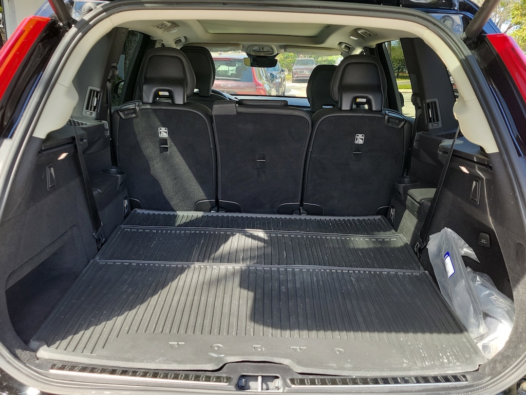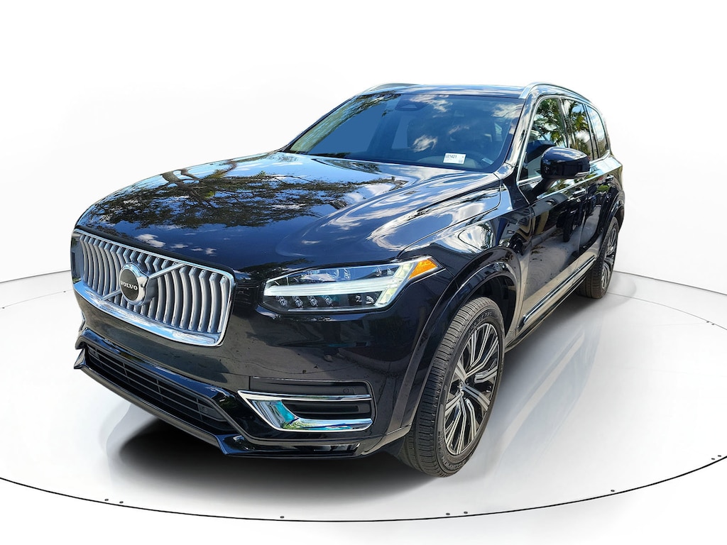 CARFAX One-Owner. Onyx Black Metallic 2024 Volvo XC90 B5 Core 2.0L I4 Turbocharged DOHC 16V LEV3-ULEV70 Automatic with Geartronic AWD Protection Package Premier (All-Weather Floor Mats, Bumper Cover, Cargo Tray, First Aid Kit, and Wheel Locks), 10 Speakers, 3rd row seats: bucket, 4-Wheel Disc Brakes, ABS brakes, Air Conditioning, Alloy wheels, AM/FM radio: SiriusXM, Anti-whiplash front head restraints, Apple CarPlay, Auto High-beam Headlights, Auto-dimming door mirrors, Auto-dimming Rear-View mirror, Automatic temperature control, Brake assist, Bumpers: body-color, Delay-off headlights, Driver door bin, Driver vanity mirror, Dual front impact airbags, Dual front side impact airbags, Electronic Stability Control, Emergency communication system: Volvo Cars App w/4 Year Subscription, Exterior Parking Camera Rear, Four wheel independent suspension, Front anti-roll bar, Front Bucket Seats, Front Center Armrest w/Storage, Front dual zone A/C, Front fog lights, Front reading lights, Fully automatic headlights, Garage door transmitter: HomeLink, Heated door mirrors, Heated Front Bucket Seats, Heated front seats, Illuminated entry, Knee airbag, Leather Shift Knob, Leatherette Upholstery, Low tire pressure warning, Memory seat, Navigation System, Occupant sensing airbag, Outside temperature display, Overhead airbag, Panic alarm, Passenger door bin, Passenger vanity mirror, Power door mirrors, Power driver seat, Power Liftgate, Power moonroof, Power passenger seat, Power steering, Power windows, Radio data system, Radio: High Performance Audio System, Rain sensing wipers, Rear air conditioning, Rear anti-roll bar, Rear dual zone A/C, Rear fog lights, Rear reading lights, Rear seat center armrest, Rear window defroster, Rear window wiper, Remote keyless entry, Security system, Speed control, Speed-sensing steering, Split folding rear seat, Spoiler, Steering wheel mounted audio controls, Tachometer, Telescoping steering wheel, Traction control, Trip computer, Turn signal indicator mirrors, Variably intermittent wipers, Wheels: 19" 6-Spoke Turbine Sparkling Silver Alloy, and Wheels: 20" 10-Spoke Black Diamond Cut Alloy.