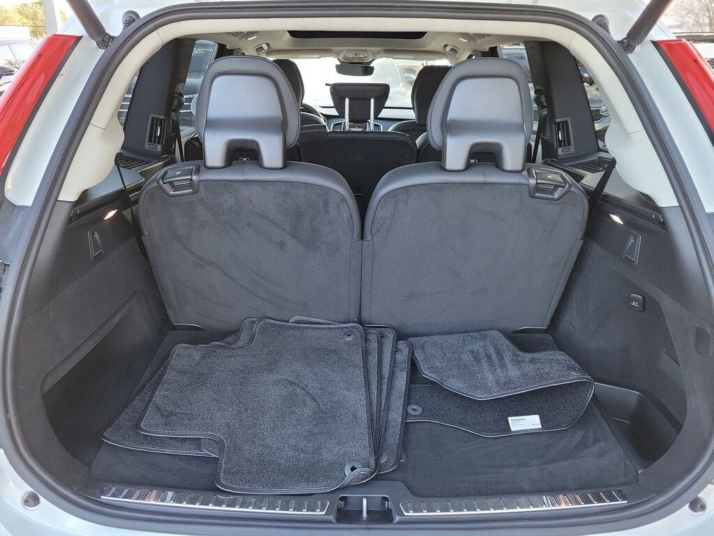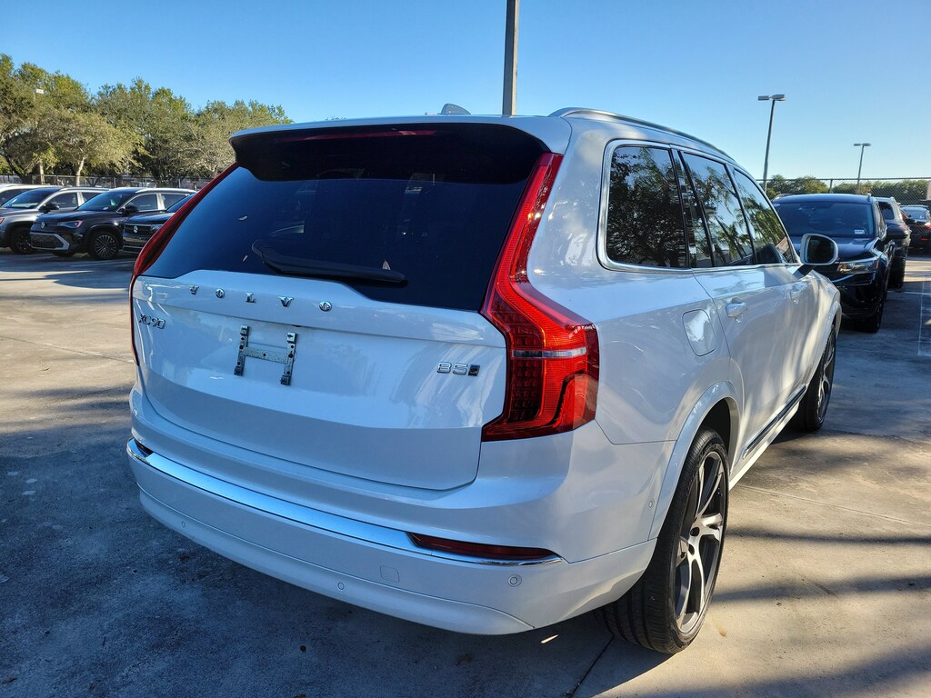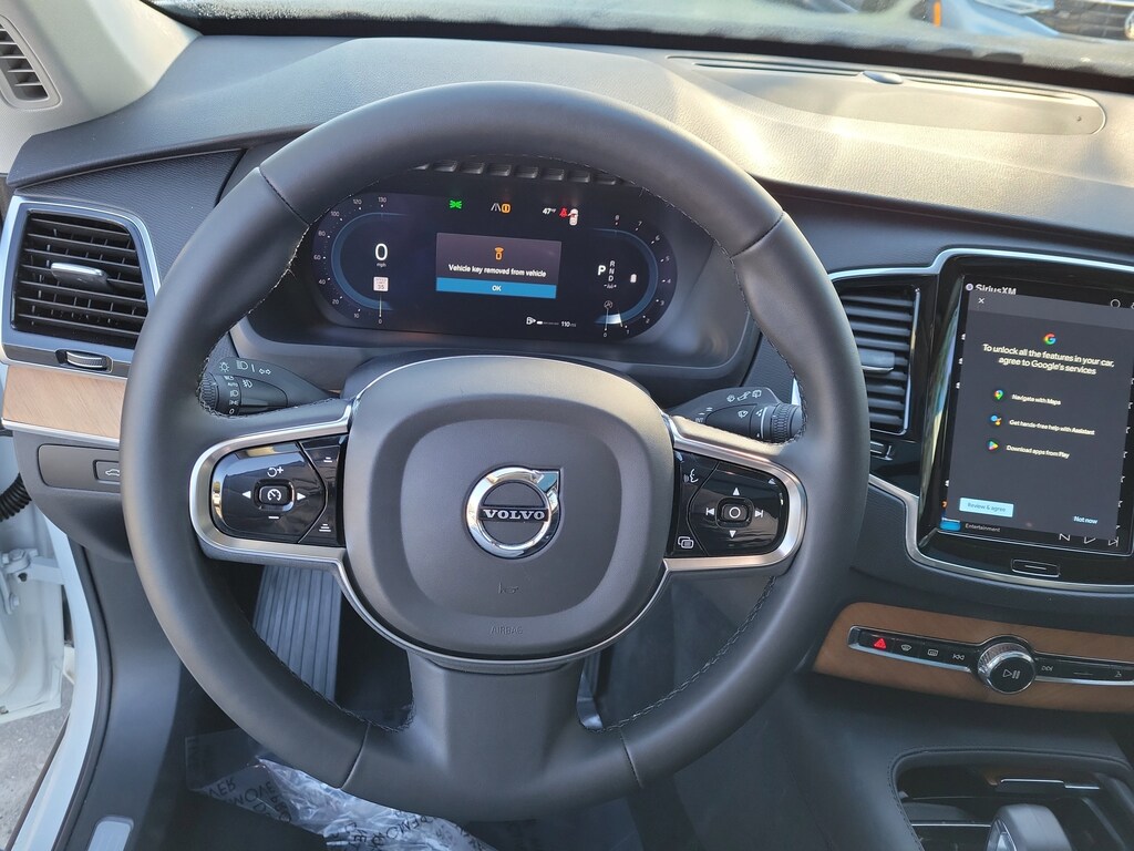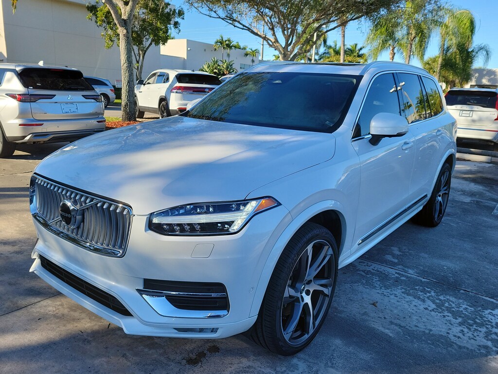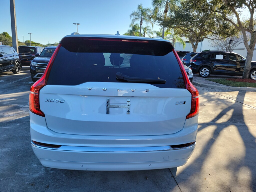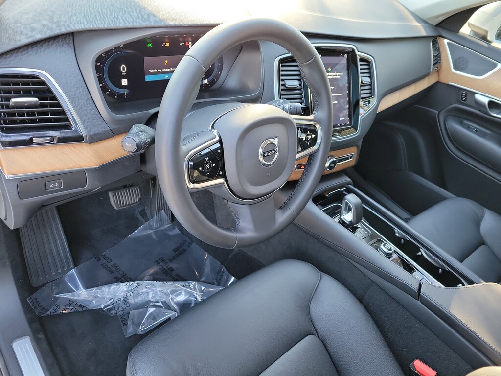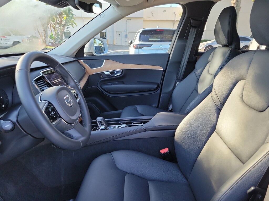 CARFAX One-Owner. Crystal White 2024 Volvo XC90 B5 Plus 2.0L I4 Turbocharged DOHC 16V LEV3-ULEV70 Automatic with Geartronic AWD 10 Speakers, 3rd row seats: bucket, 4-Wheel Disc Brakes, ABS brakes, Air Conditioning, Alloy wheels, AM/FM radio: SiriusXM, Anti-whiplash front head restraints, Apple CarPlay, Auto High-beam Headlights, Auto-dimming door mirrors, Auto-dimming Rear-View mirror, Automatic temperature control, Brake assist, Bumpers: body-color, Delay-off headlights, Driver door bin, Driver vanity mirror, Dual front impact airbags, Dual front side impact airbags, Electronic Stability Control, Emergency communication system: Volvo Cars App w/4 Year Subscription, Exterior Parking Camera Rear, Four wheel independent suspension, Front anti-roll bar, Front Bucket Seats, Front Center Armrest w/Storage, Front dual zone A/C, Front fog lights, Front reading lights, Fully automatic headlights, Garage door transmitter: HomeLink, Genuine wood dashboard insert, Genuine wood door panel insert, Headlight cleaning, Heated door mirrors, Heated Front Bucket Seats, Heated front seats, Heated rear seats, Heated steering wheel, Illuminated entry, Integrated rear child seats, Knee airbag, Leather Shift Knob, Leather Upholstery, Low tire pressure warning, Memory seat, Navigation System, Occupant sensing airbag, Outside temperature display, Overhead airbag, Panic alarm, Passenger door bin, Passenger vanity mirror, Power door mirrors, Power driver seat, Power Liftgate, Power moonroof, Power passenger seat, Power steering, Power windows, Radio data system, Radio: High Performance Audio System, Rain sensing wipers, Rear air conditioning, Rear anti-roll bar, Rear dual zone A/C, Rear fog lights, Rear reading lights, Rear seat center armrest, Rear window defroster, Rear window wiper, Remote keyless entry, Security system, Speed control, Speed-sensing steering, Split folding rear seat, Spoiler, Steering wheel mounted audio controls, Tachometer, Telescoping steering wheel, Traction control, Trip computer, Turn signal indicator mirrors, Variably intermittent wipers, Wheels: 20" 10-Spoke Black Diamond Cut Alloy, and Wheels: 22" 6-Spoke Black Matte.