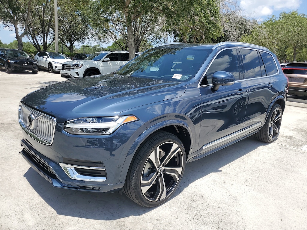 CARFAX One-Owner. Certified. Denim Blue 2024 Volvo XC90 Ultimate 2.0L I4 Turbocharged DOHC 16V LEV3-ULEV70 Automatic with Geartronic AWD 14 Speakers, 3rd row seats: bucket, 4-Wheel Disc Brakes, ABS brakes, Air Conditioning, Alloy wheels, AM/FM radio: SiriusXM, Anti-whiplash front head restraints, Apple CarPlay, Auto High-beam Headlights, Auto-dimming door mirrors, Auto-dimming Rear-View mirror, Automatic temperature control, Brake assist, Bumpers: body-color, Delay-off headlights, Driver door bin, Driver vanity mirror, Dual front impact airbags, Dual front side impact airbags, Electronic Stability Control, Emergency communication system: Volvo Cars App w/4 Year Subscription, Exterior Parking Camera Rear, Four wheel independent suspension, Front anti-roll bar, Front Bucket Seats, Front Center Armrest w/Storage, Front dual zone A/C, Front fog lights, Front reading lights, Fully automatic headlights, Garage door transmitter: HomeLink, Genuine wood dashboard insert, Genuine wood door panel insert, harman/kardon® Speakers, Headlight cleaning, Heads-Up Display, Heated & Ventilated Front Bucket Seats, Heated door mirrors, Heated front seats, Heated rear seats, Heated steering wheel, Illuminated entry, Integrated rear child seats, Knee airbag, Low tire pressure warning, Memory seat, Navigation System, Occupant sensing airbag, Outside temperature display, Overhead airbag, Panic alarm, Passenger door bin, Passenger vanity mirror, Perforated Nappa Leather Upholstery, Power door mirrors, Power driver seat, Power Liftgate, Power moonroof, Power passenger seat, Power steering, Power windows, Radio data system, Radio: harman/kardon Premium Audio System, Rain sensing wipers, Rear air conditioning, Rear anti-roll bar, Rear dual zone A/C, Rear fog lights, Rear reading lights, Rear seat center armrest, Rear window defroster, Rear window wiper, Remote keyless entry, Security system, Speed control, Speed-sensing steering, Split folding rear seat, Spoiler, Steering wheel mounted audio controls, Tachometer, Telescoping steering wheel, Traction control, Trip computer, Turn signal indicator mirrors, Variably intermittent wipers, Ventilated front seats, and Wheels: 21" 8-Multi Spoke Black Diamond Cut Alloy.