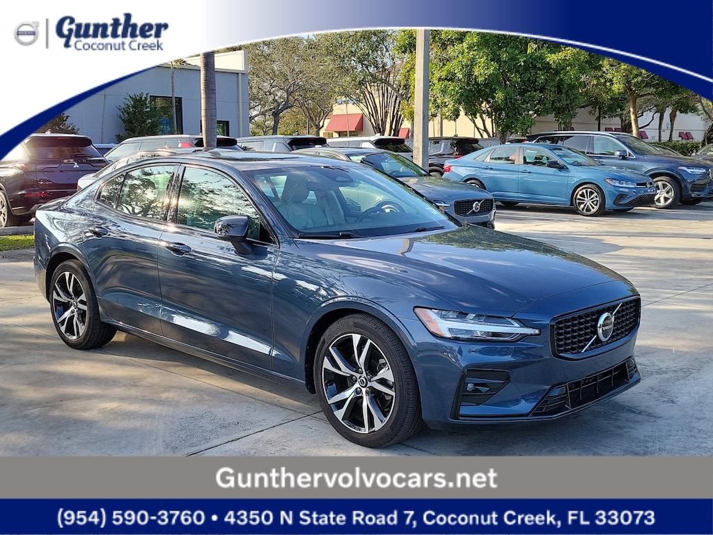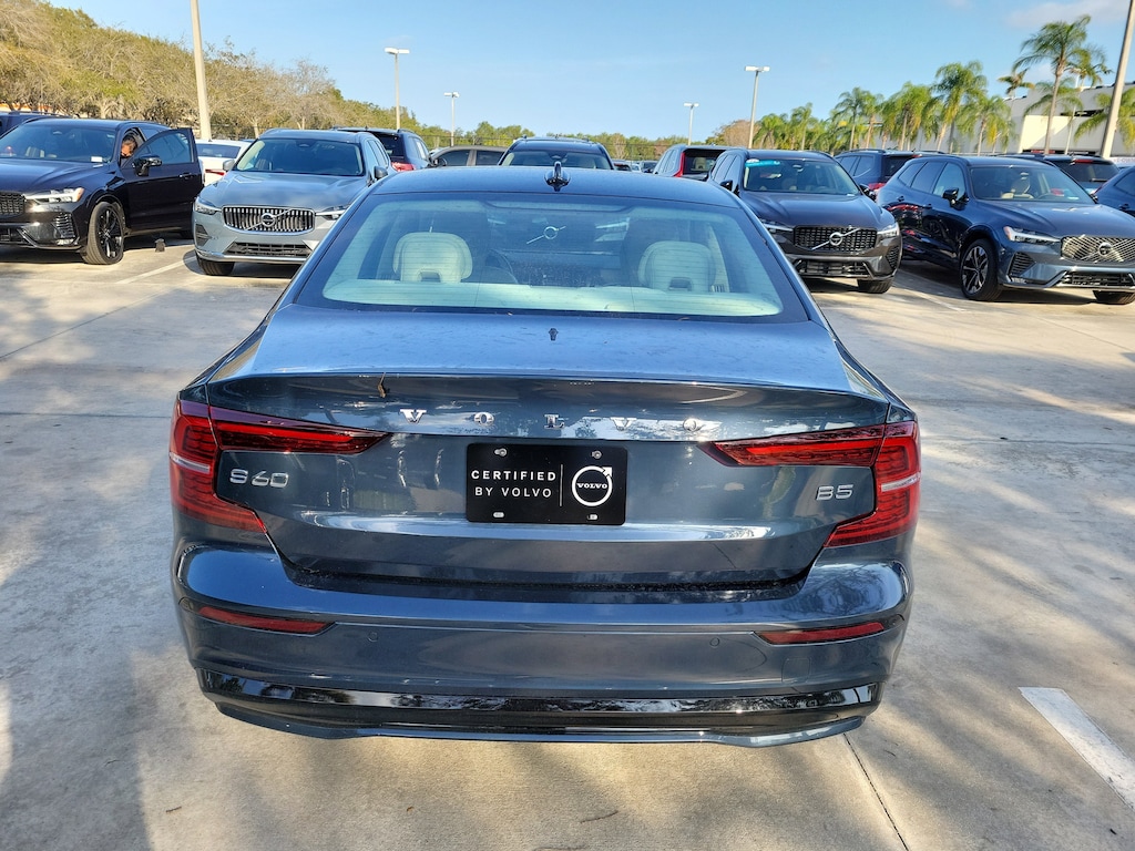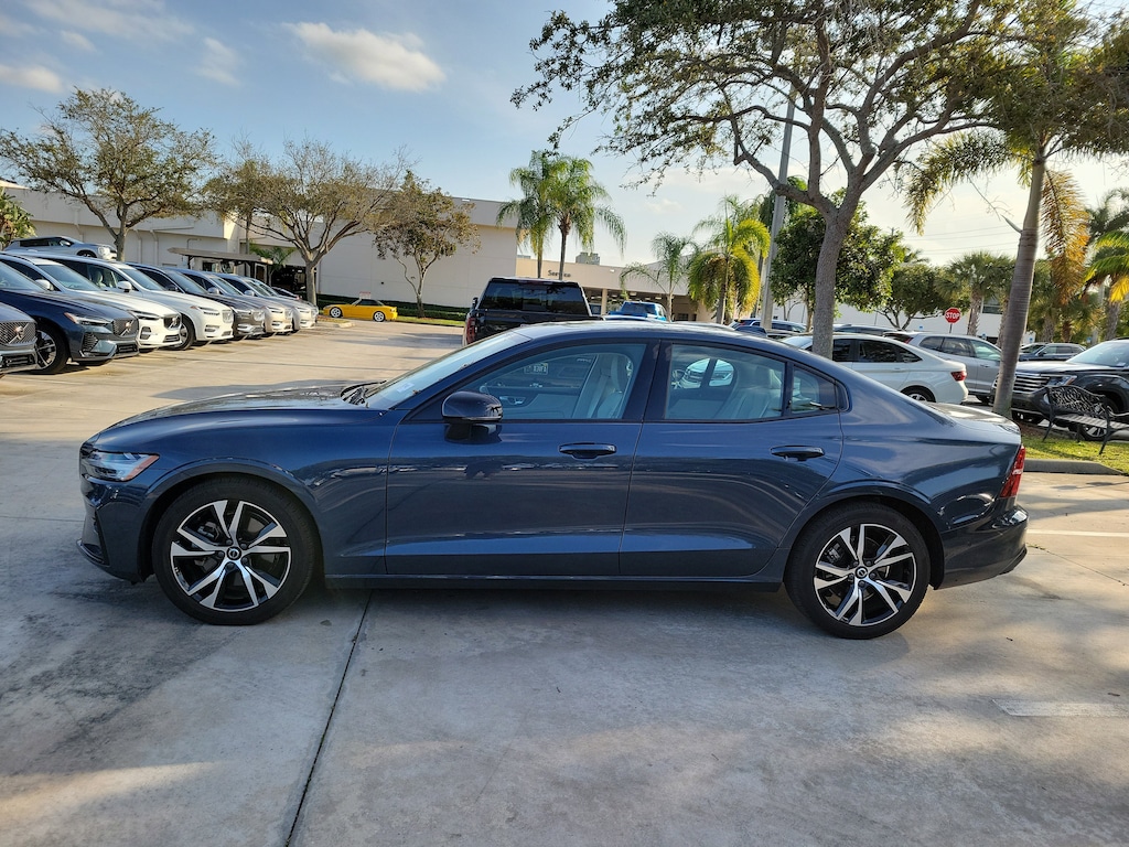 Recent Arrival! CARFAX One-Owner. Denim Blue 2025 Volvo S60 B5 Plus 2.0L I4 Automatic with Geartronic FWD 10 Speakers, 4-Wheel Disc Brakes, ABS brakes, Air Conditioning, Alloy wheels, AM/FM radio: SiriusXM, Anti-whiplash front head restraints, Apple CarPlay, Auto High-beam Headlights, Auto-dimming door mirrors, Auto-dimming Rear-View mirror, Automatic temperature control, Brake assist, Bumpers: body-color, Delay-off headlights, Driver door bin, Driver vanity mirror, Dual front impact airbags, Dual front side impact airbags, Electronic Stability Control, Emergency communication system: Volvo Cars App w/4 Year Subscription, Four wheel independent suspension, Front anti-roll bar, Front Bucket Seats, Front Center Armrest, Front dual zone A/C, Front fog lights, Front reading lights, Fully automatic headlights, Garage door transmitter: HomeLink, Genuine wood dashboard insert, Heated door mirrors, Illuminated entry, Knee airbag, Leather Seating Surfaces, Leather Shift Knob, Leather steering wheel, Low tire pressure warning, Memory seat, Occupant sensing airbag, Outside temperature display, Overhead airbag, Overhead console, Panic alarm, Passenger door bin, Passenger vanity mirror, Power door mirrors, Power driver seat, Power moonroof, Power passenger seat, Power steering, Power windows, Radio data system, Radio: High Performance Audio, Rain sensing wipers, Rear anti-roll bar, Rear fog lights, Rear reading lights, Rear seat center armrest, Rear window defroster, Remote keyless entry, Security system, Speed control, Split folding rear seat, Steering wheel mounted audio controls, Tachometer, Telescoping steering wheel, Tilt steering wheel, Traction control, Trip computer, Turn signal indicator mirrors, Variably intermittent wipers, and Wheels: 18" 5-Spoke Black Diamond-Cut Alloy.
