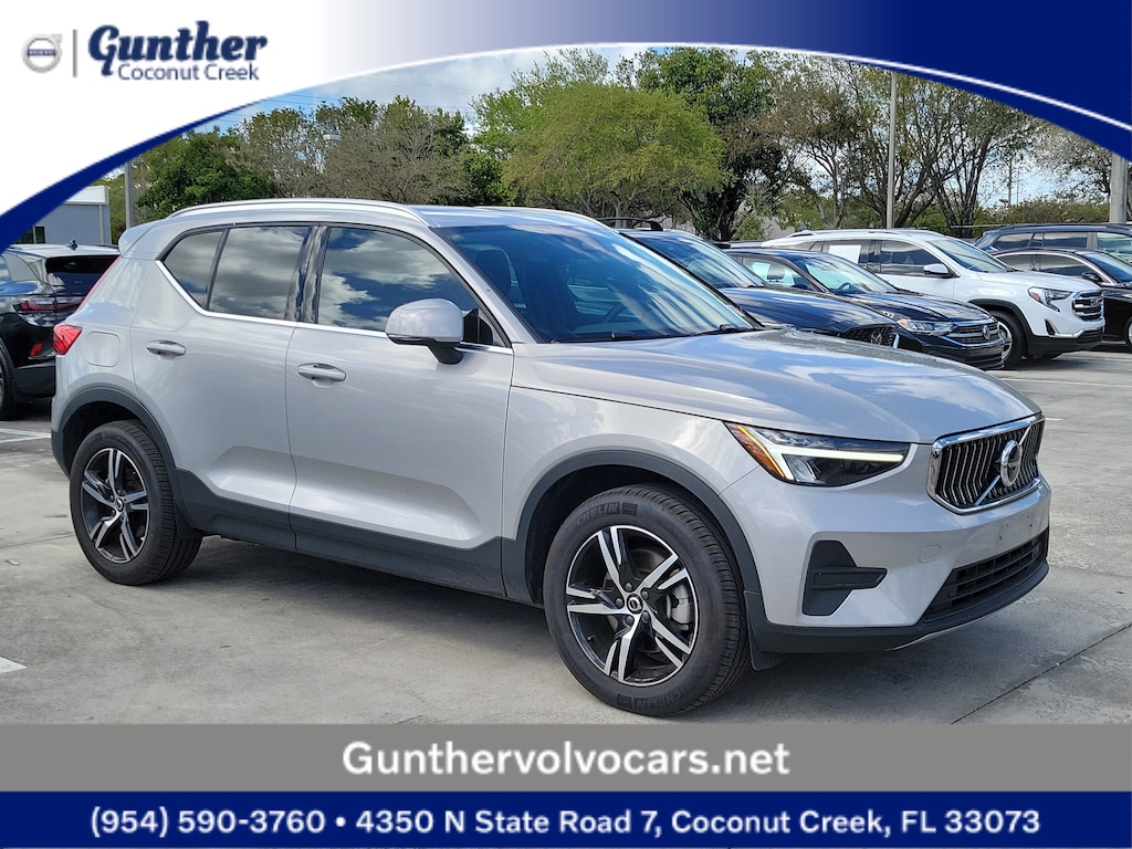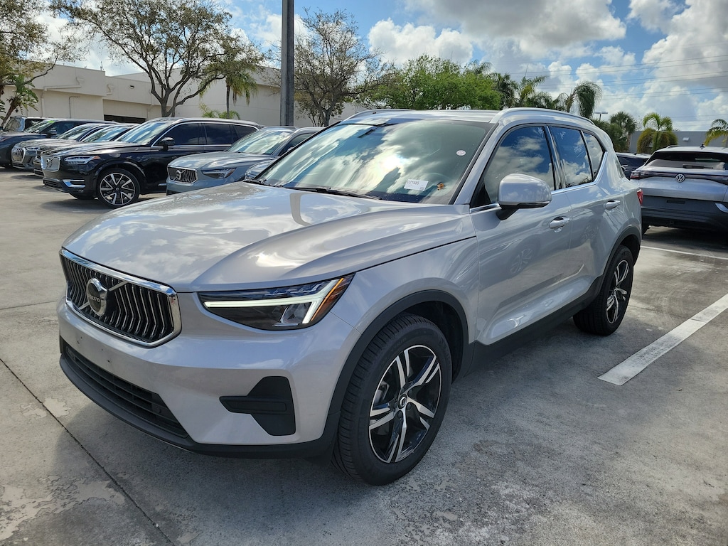 CARFAX One-Owner. Silver Dawn Metallic 2025 Volvo XC40 B5 Core 2.0L I4 Turbocharged DOHC 16V LEV3-ULEV70 Automatic with Geartronic AWD Internet access capable: Digital Services Package w/ 4 Year Subscription, 4-Wheel Disc Brakes, 8 Speakers, ABS brakes, Air Conditioning, Alloy wheels, AM/FM radio: SiriusXM, Apple CarPlay, Auto High-beam Headlights, Auto-dimming door mirrors, Auto-dimming Rear-View mirror, Automatic temperature control, Brake assist, Bumpers: body-color, City Block Textile Seating Surfaces, Delay-off headlights, Driver door bin, Driver vanity mirror, Dual front impact airbags, Dual front side impact airbags, Electronic Stability Control, Emergency communication system, Exterior Parking Camera Rear, Four wheel independent suspension, Front anti-roll bar, Front Bucket Seats, Front Center Armrest, Front dual zone A/C, Front reading lights, Fully automatic headlights, Heated door mirrors, Heated Front Seats, Heated front seats, Illuminated entry, Knee airbag, Low tire pressure warning, Memory seat, Navigation system: Google Maps w/ 4 Year Subscription, Occupant sensing airbag, Outside temperature display, Overhead airbag, Overhead console, Panic alarm, Passenger door bin, Passenger vanity mirror, Power door mirrors, Power driver seat, Power Liftgate, Power steering, Power windows, Radio data system, Radio: High Performance Sound System, Rain sensing wipers, Rear anti-roll bar, Rear fog lights, Rear reading lights, Rear seat center armrest, Rear window defroster, Rear window wiper, Remote keyless entry, Security system, Speed control, Speed-sensing steering, Split folding rear seat, Spoiler, Steering wheel mounted audio controls, Tachometer, Telescoping steering wheel, Tilt steering wheel, Traction control, Trip computer, Turn signal indicator mirrors, Variably intermittent wipers, and Wheels: 18" 5-Double Spoke Black Diamond Cut Alloy.