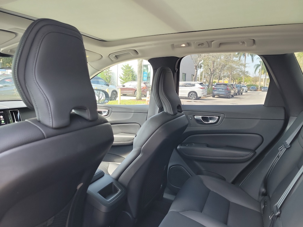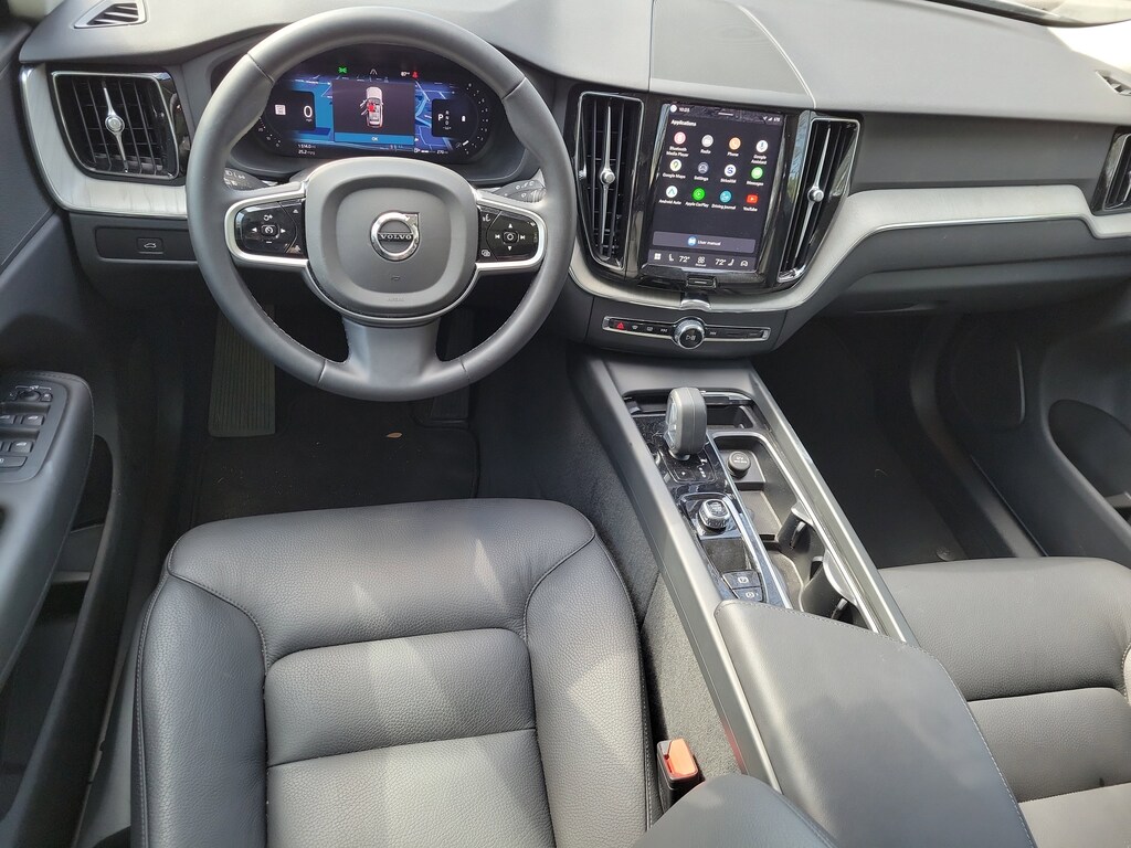 CARFAX One-Owner. Silver 2025 Volvo XC60 B5 Plus 2.0L I4 Turbocharged DOHC 16V LEV3-ULEV70 Automatic with Geartronic AWD 10 Speakers, 4-Wheel Disc Brakes, ABS brakes, Air Conditioning, Alloy wheels, AM/FM radio: SiriusXM, Anti-whiplash front head restraints, Apple CarPlay, Auto High-beam Headlights, Auto-dimming door mirrors, Auto-dimming Rear-View mirror, Automatic temperature control, Brake assist, Bumpers: body-color, Delay-off headlights, Driver door bin, Driver vanity mirror, Dual front impact airbags, Dual front side impact airbags, Electronic Stability Control, Emergency communication system: Volvo Cars App w/4 Year Subscription, Exterior Parking Camera Rear, Four wheel independent suspension, Front anti-roll bar, Front Bucket Seats, Front Center Armrest, Front dual zone A/C, Front fog lights, Front reading lights, Fully automatic headlights, Garage door transmitter: HomeLink, Heated door mirrors, Heated Front Bucket Seats, Heated front seats, Illuminated entry, Knee airbag, Leather Shift Knob, Leatherette Upholstery, Low tire pressure warning, Memory seat, Occupant sensing airbag, Outside temperature display, Overhead airbag, Panic alarm, Passenger door bin, Passenger vanity mirror, Power door mirrors, Power driver seat, Power Liftgate, Power moonroof, Power passenger seat, Power steering, Power windows, Radio data system, Radio: High Performance Sound System, Rain sensing wipers, Rear anti-roll bar, Rear fog lights, Rear reading lights, Rear seat center armrest, Rear window defroster, Rear window wiper, Remote keyless entry, Security system, Speed control, Split folding rear seat, Spoiler, Steering wheel mounted audio controls, Tachometer, Telescoping steering wheel, Tilt steering wheel, Traction control, Trip computer, Turn signal indicator mirrors, Variably intermittent wipers, and Wheels: 19" 5-V Spoke Black Diamond Cut Alloy.
